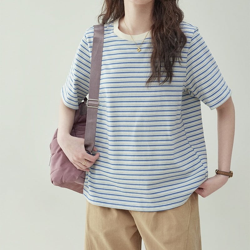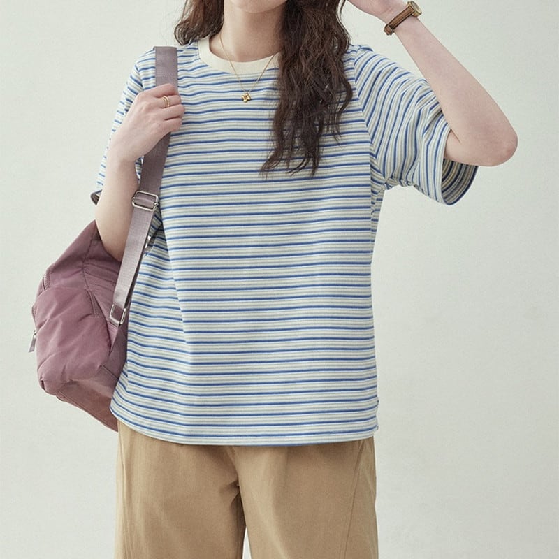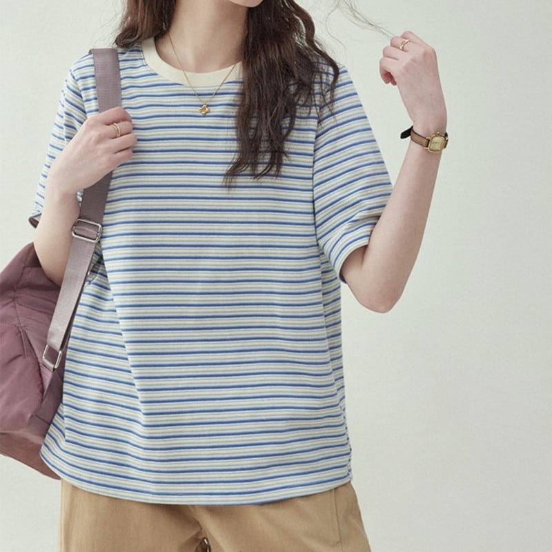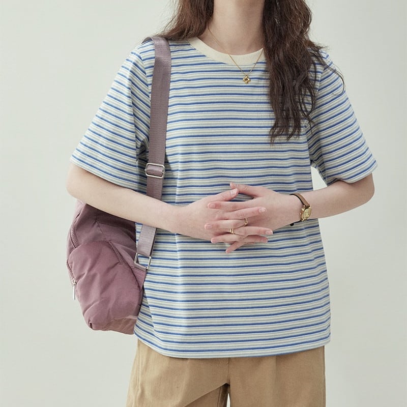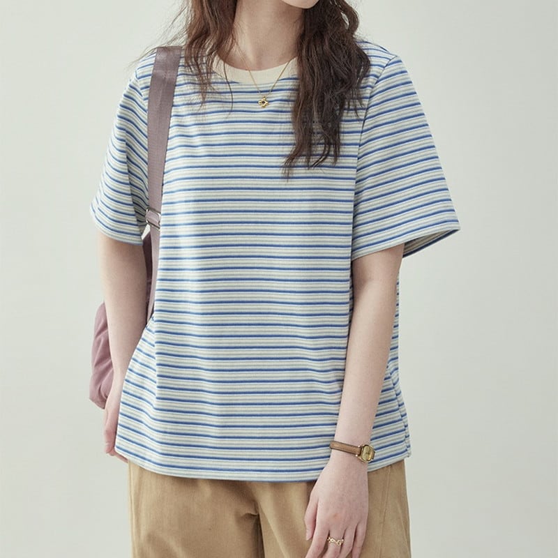 【終売】ボーダー柄クルーネックTシャツ M1302