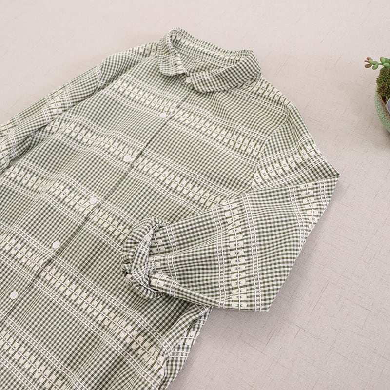 チェック柄花柄刺繍レトロシャツワンピース M1236