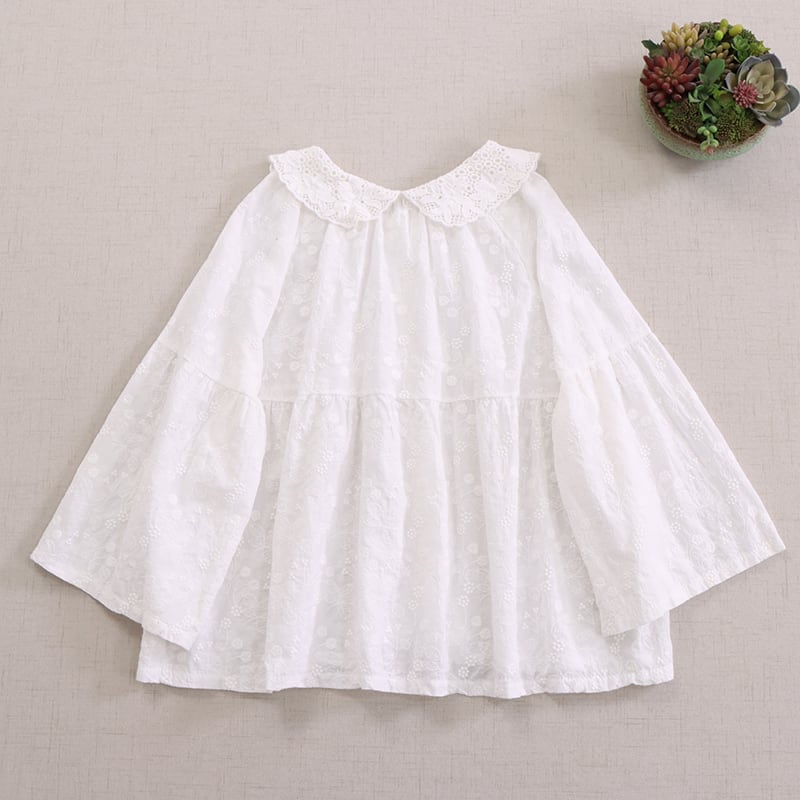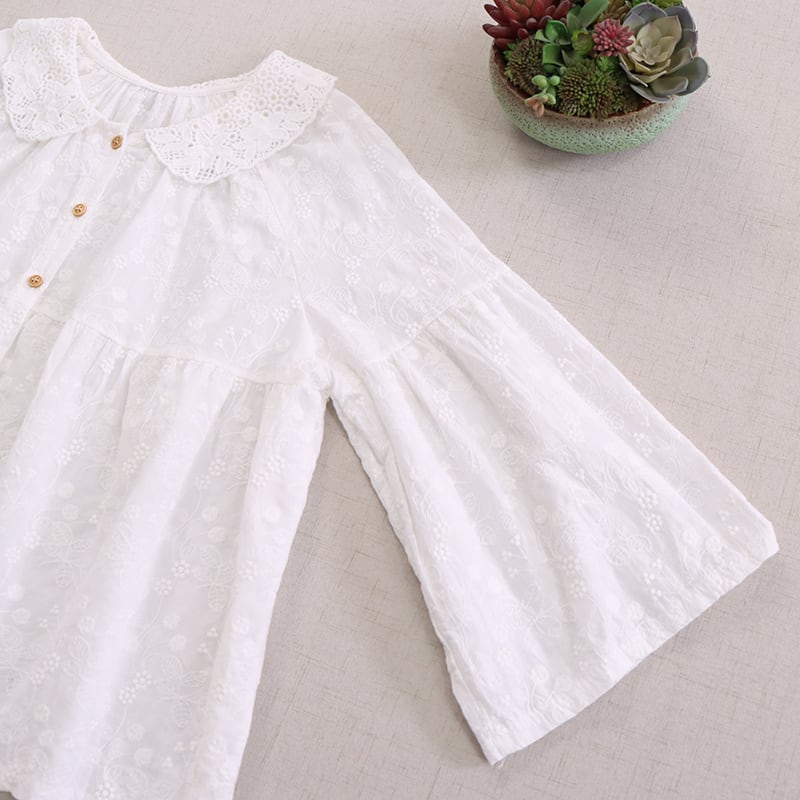 花柄刺繍入りレース襟フレア袖ブラウス M1241