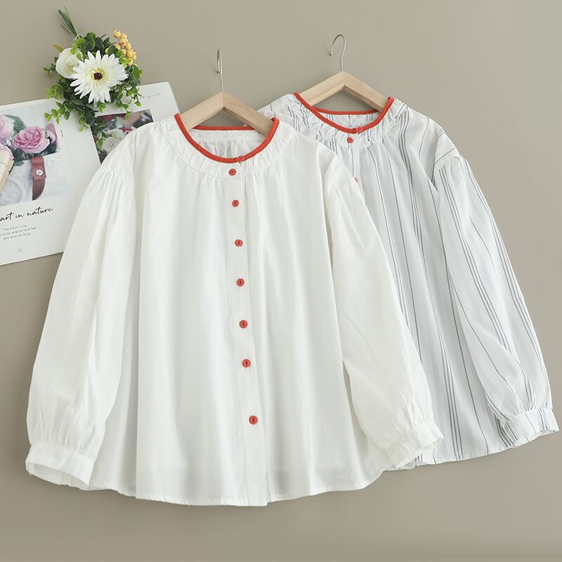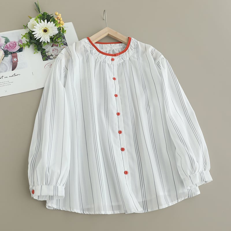 【終売】コントラストカラーパフスリーブシャツ M1358