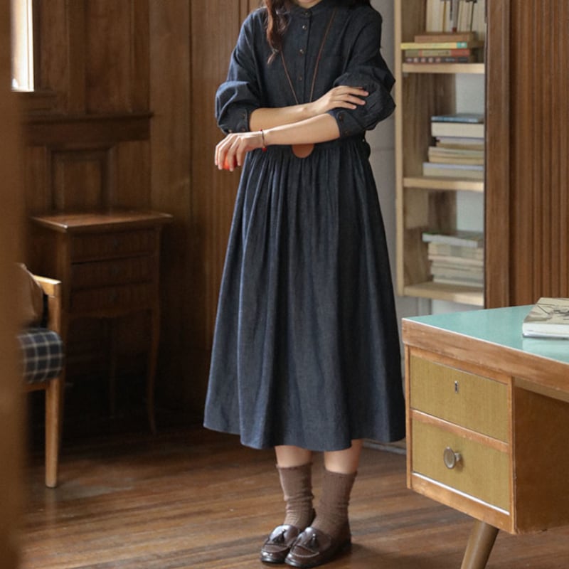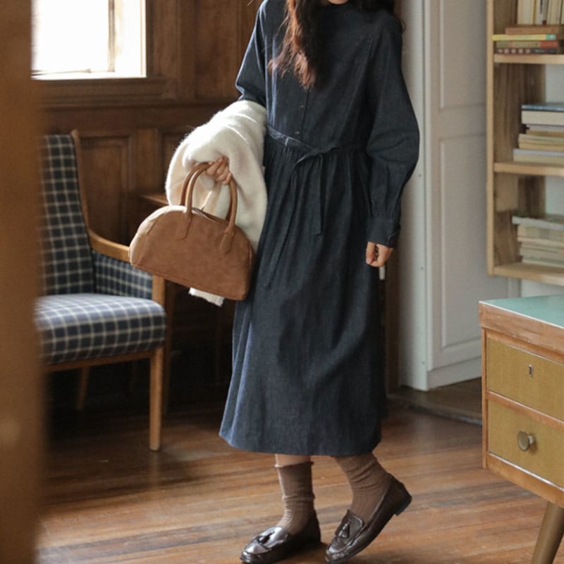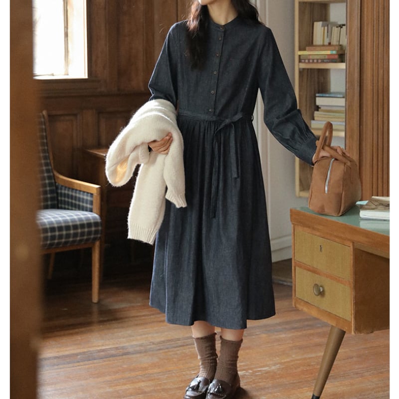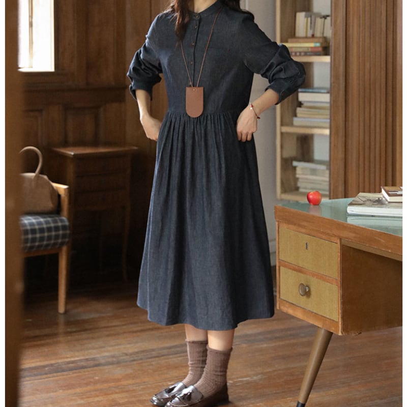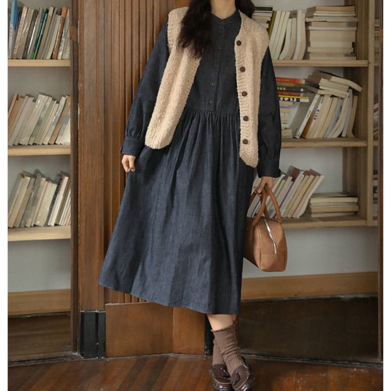 ラウンドネックデニムワンピース M1361