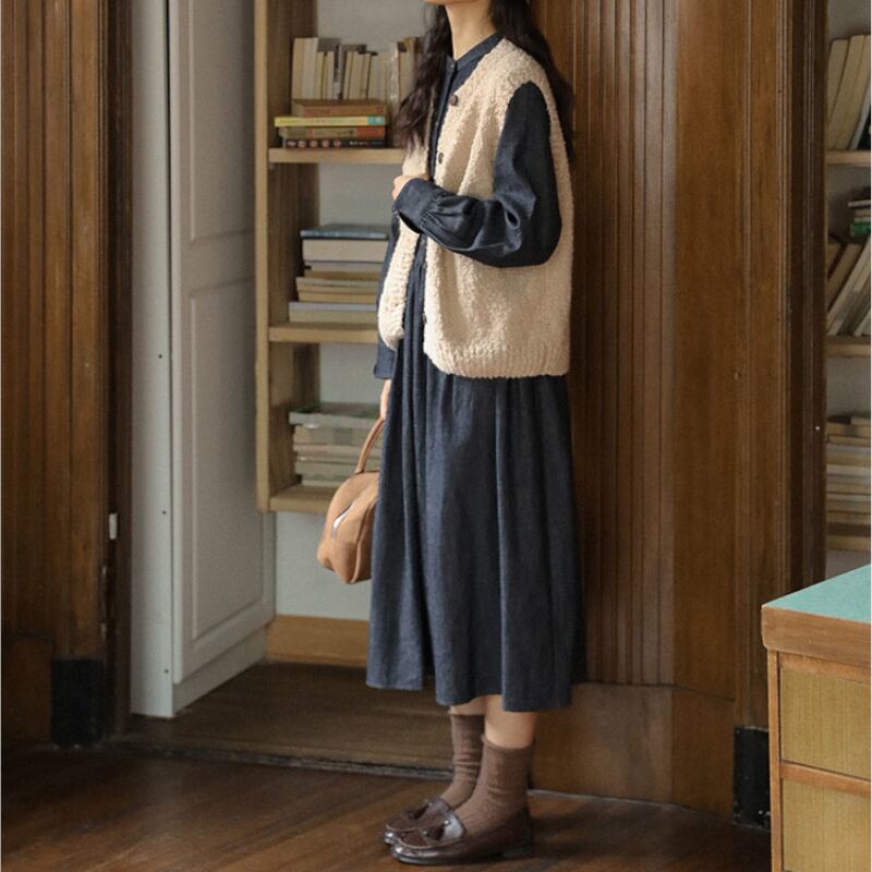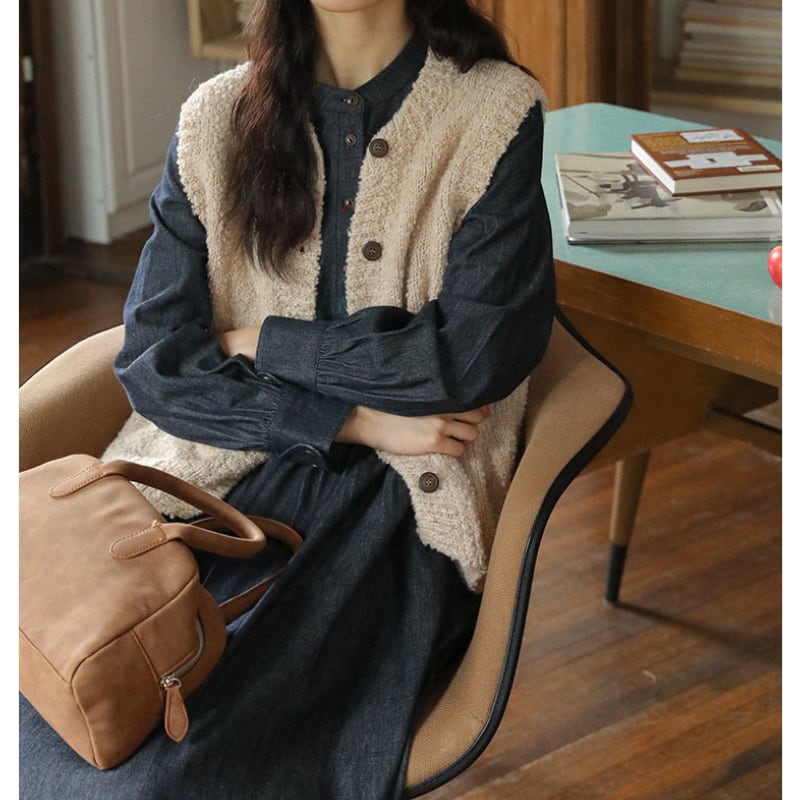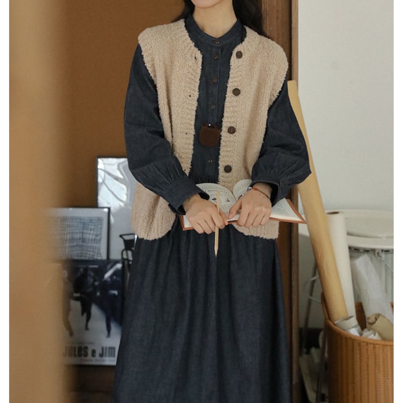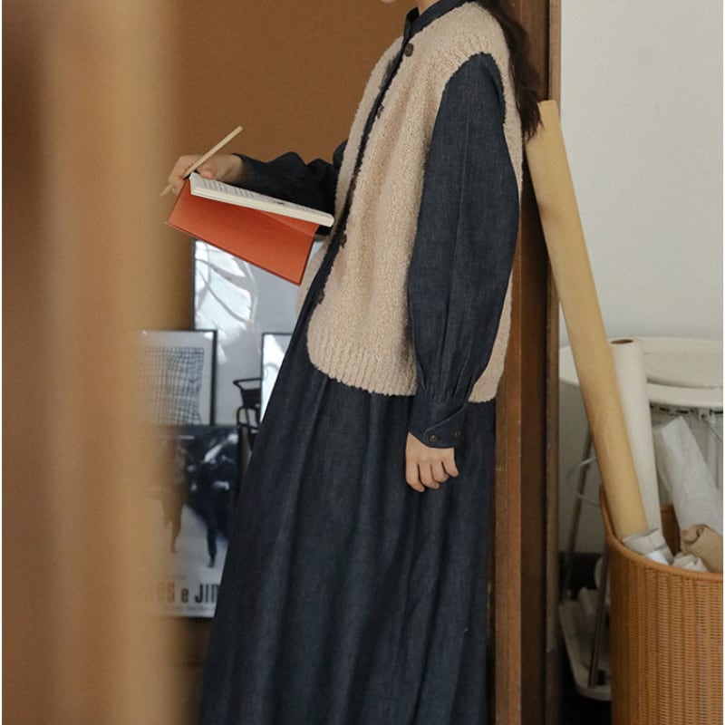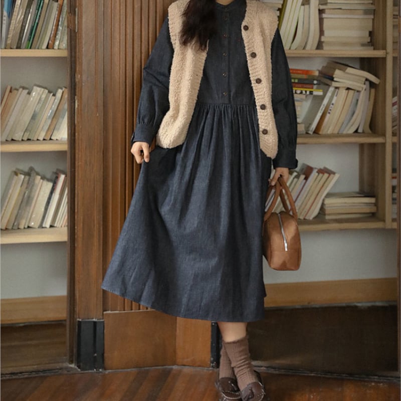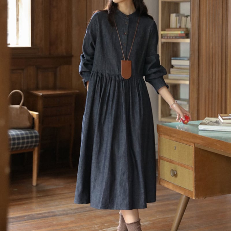 ラウンドネックデニムワンピース M1361