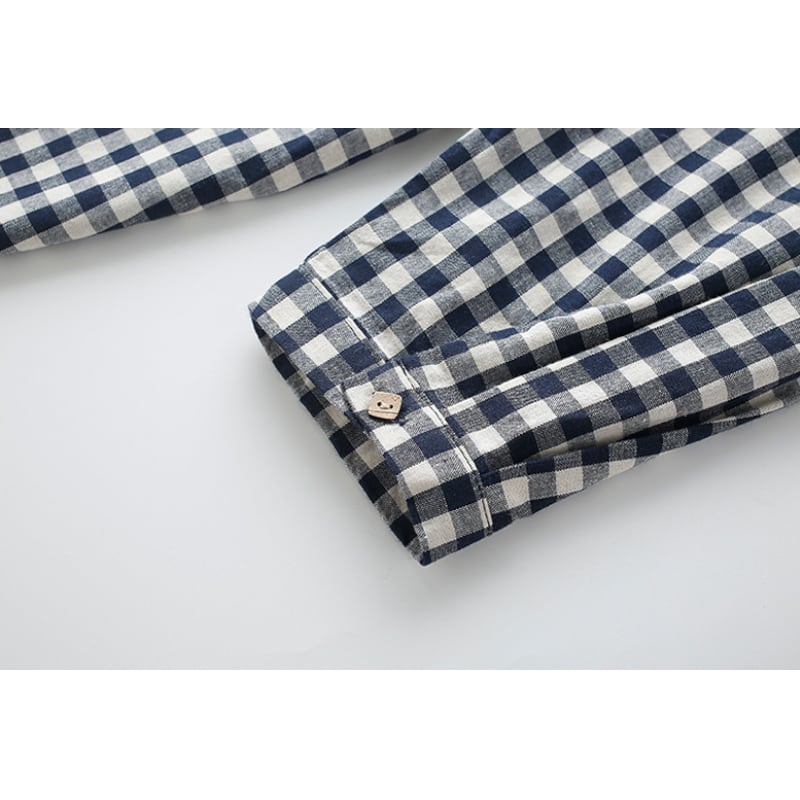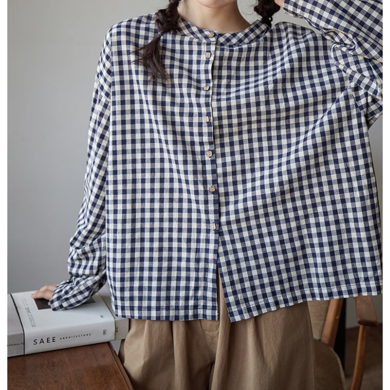 ナチュラルコーデの定番、ギンガムチェック柄ブラウス。