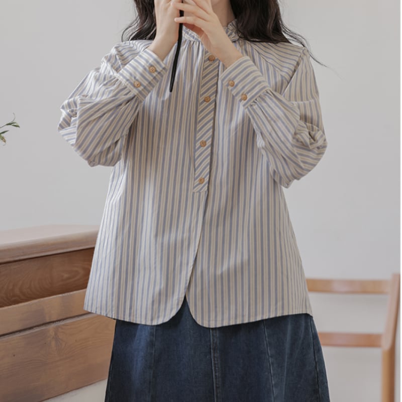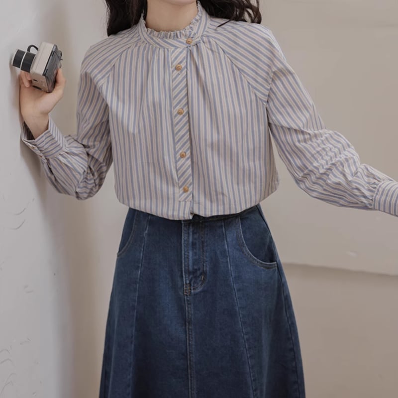 フリルカラーストライプデザインシャツ M1739