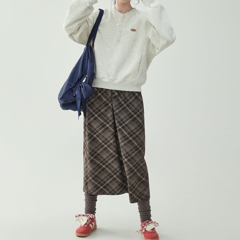カジュアルコーデの定番に加えたい、ヘンリーネックスウェットです。