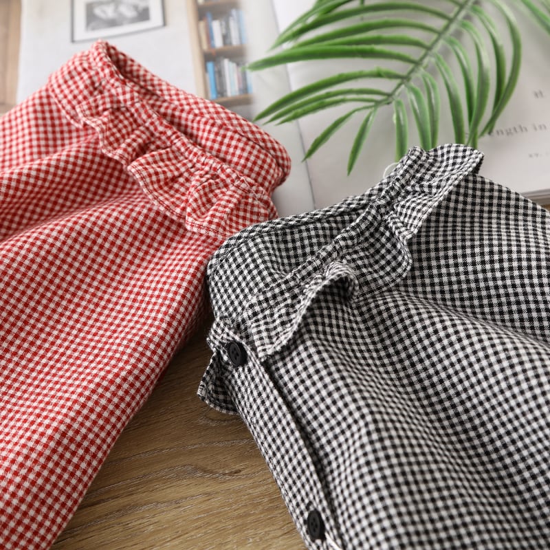 フリルカラーが可愛いギンガムチェックブラウス。