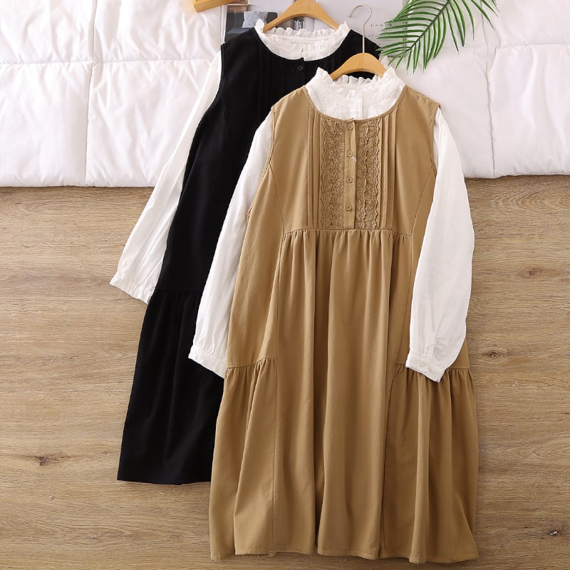 レースデザインラウンドネックベストスカート M1864