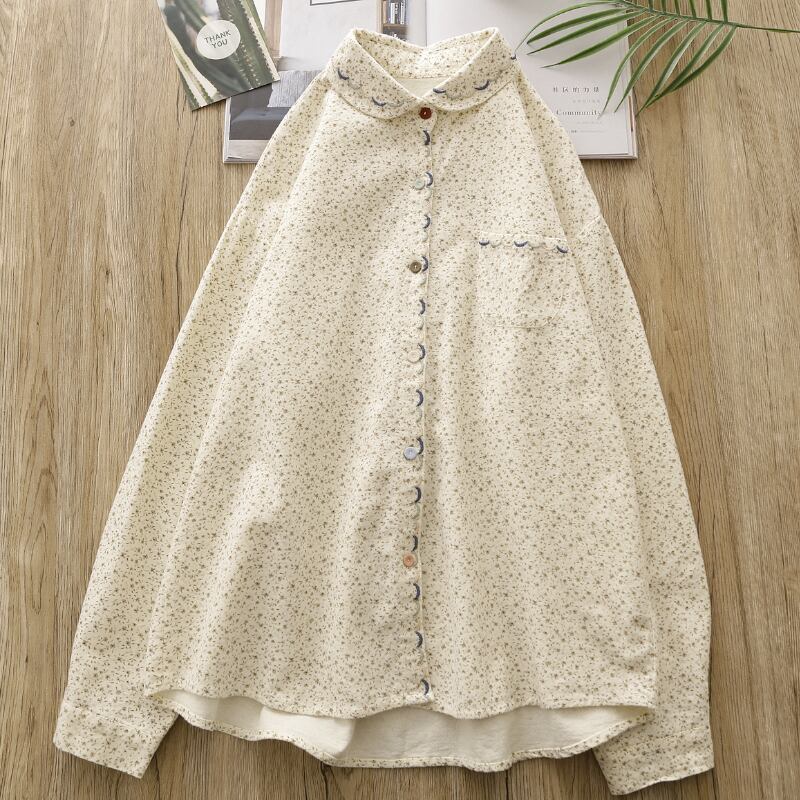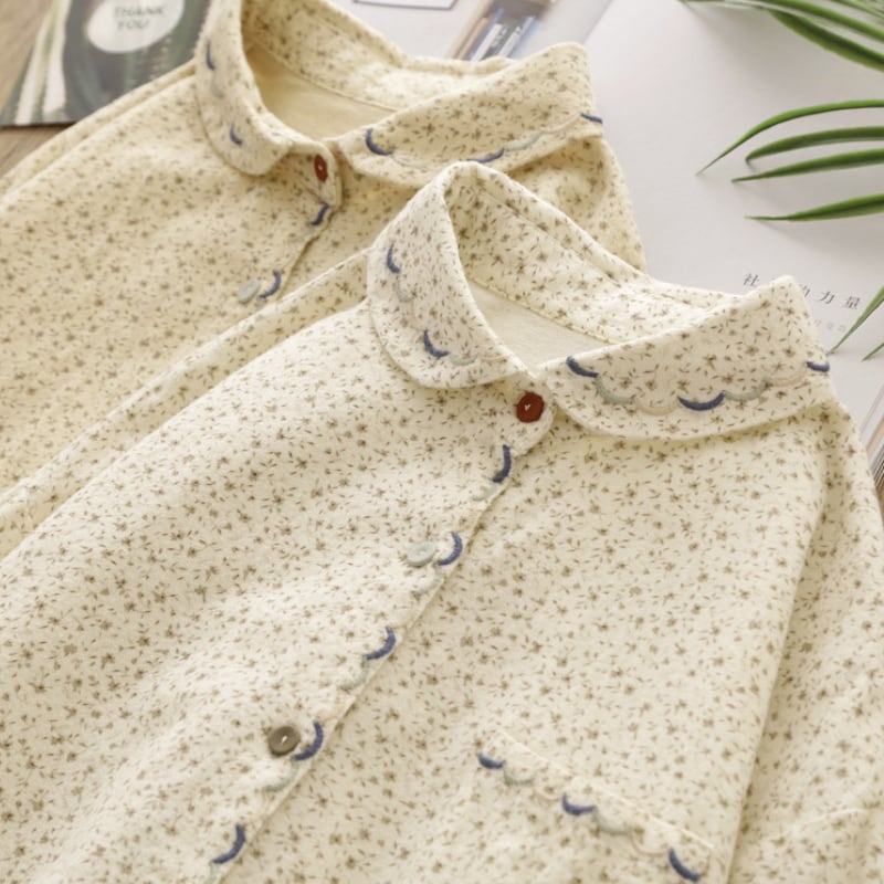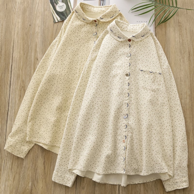 丸襟と前立てのさりげない装飾が可愛い一枚。