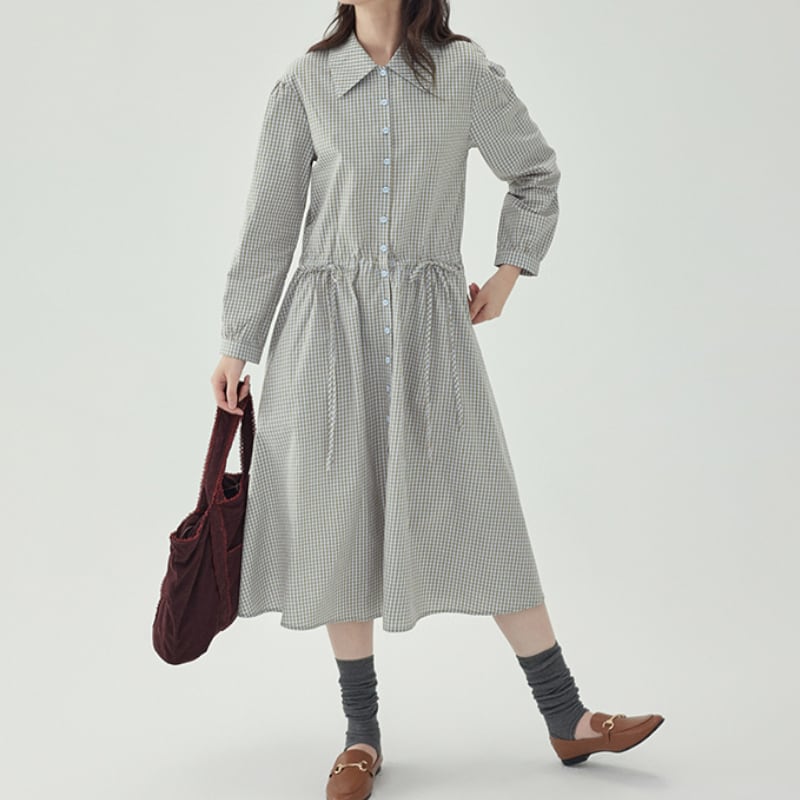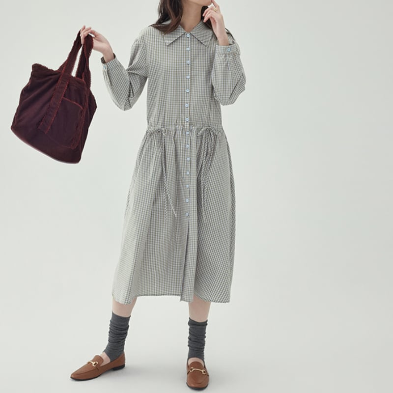 ウエストの絞り方で、ふんわりもすっきりも楽しめる万能ワンピース。