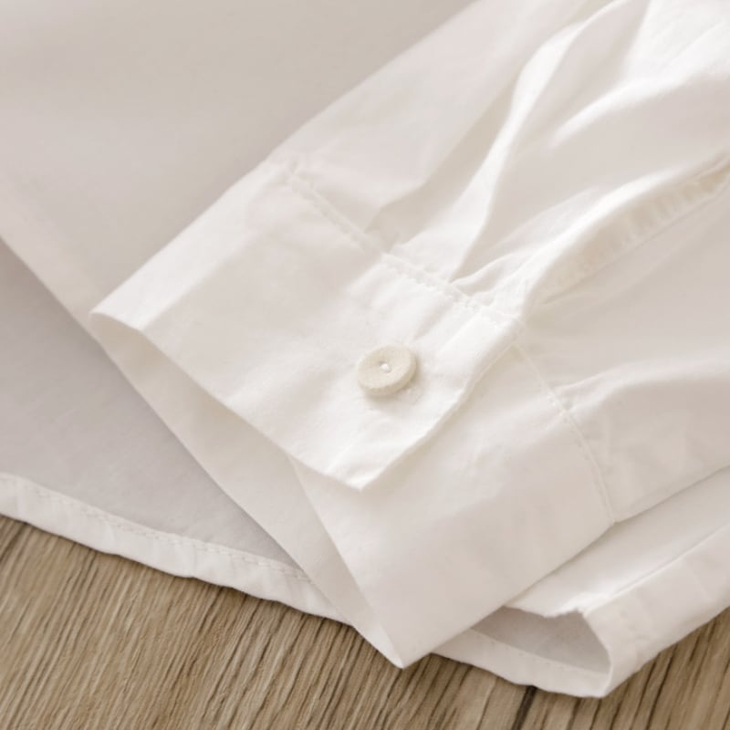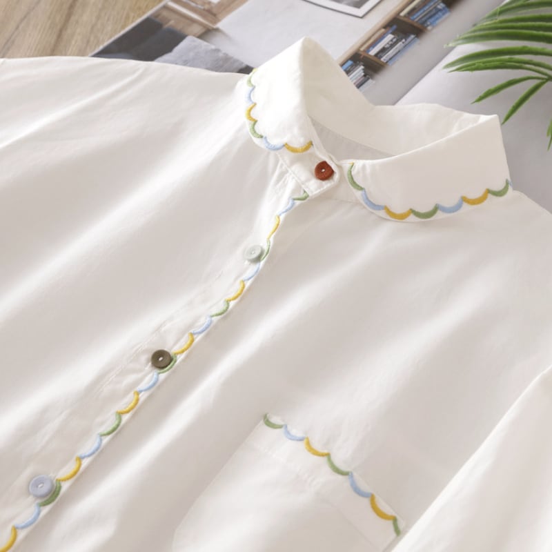 さりげない刺繍と個性的なボタンが光るデザイン。