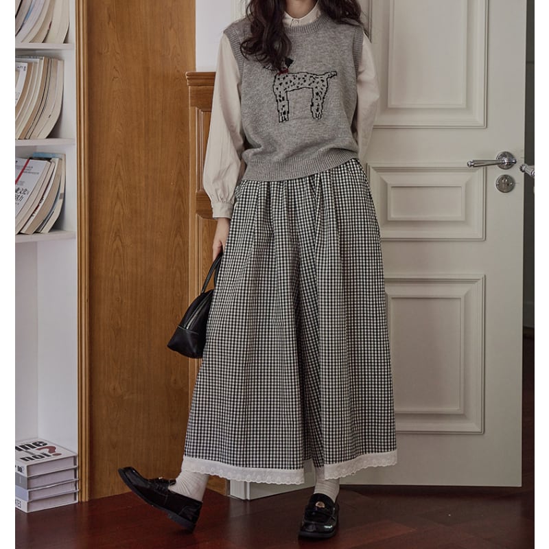 クラシカルなチェック柄に、裾の控えめレースが大人の甘さをプラス。