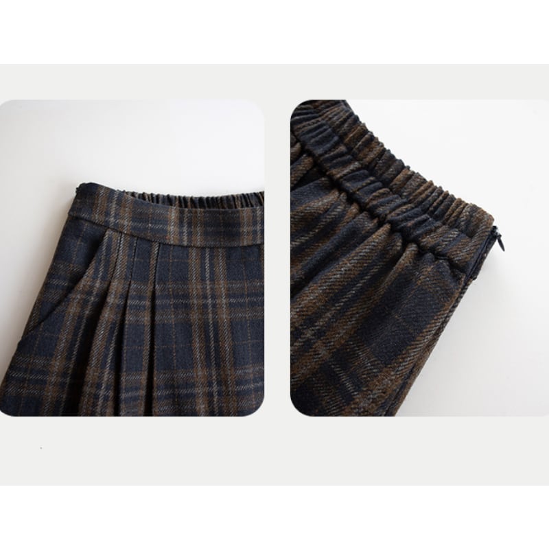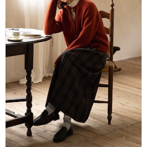 チェック柄ハイウエストミディアム丈Aラインスカート M1929