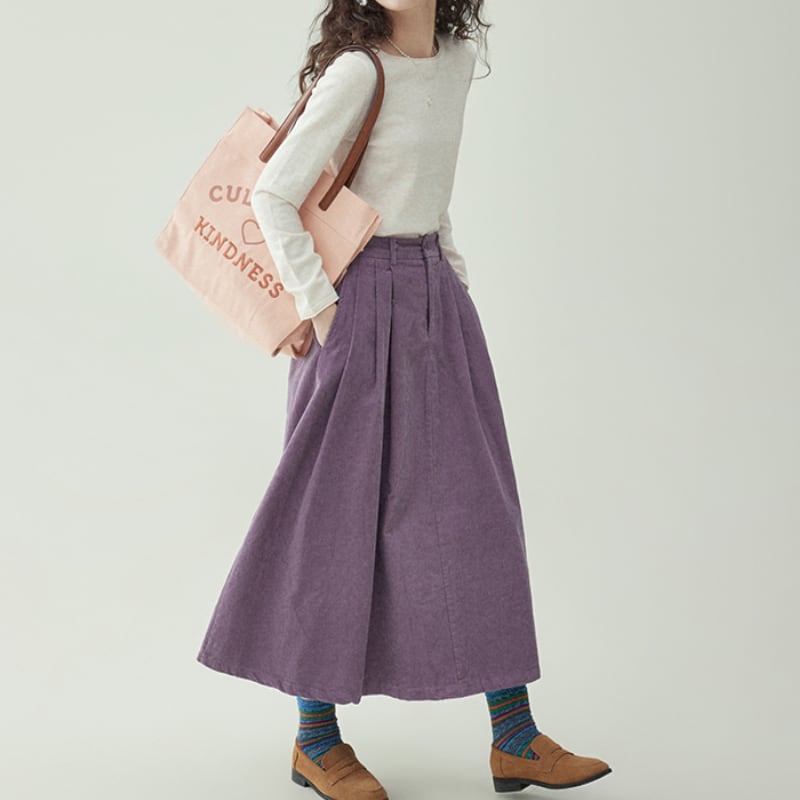 フレンチハイウエストミドル丈コーデュロイスカート M1921