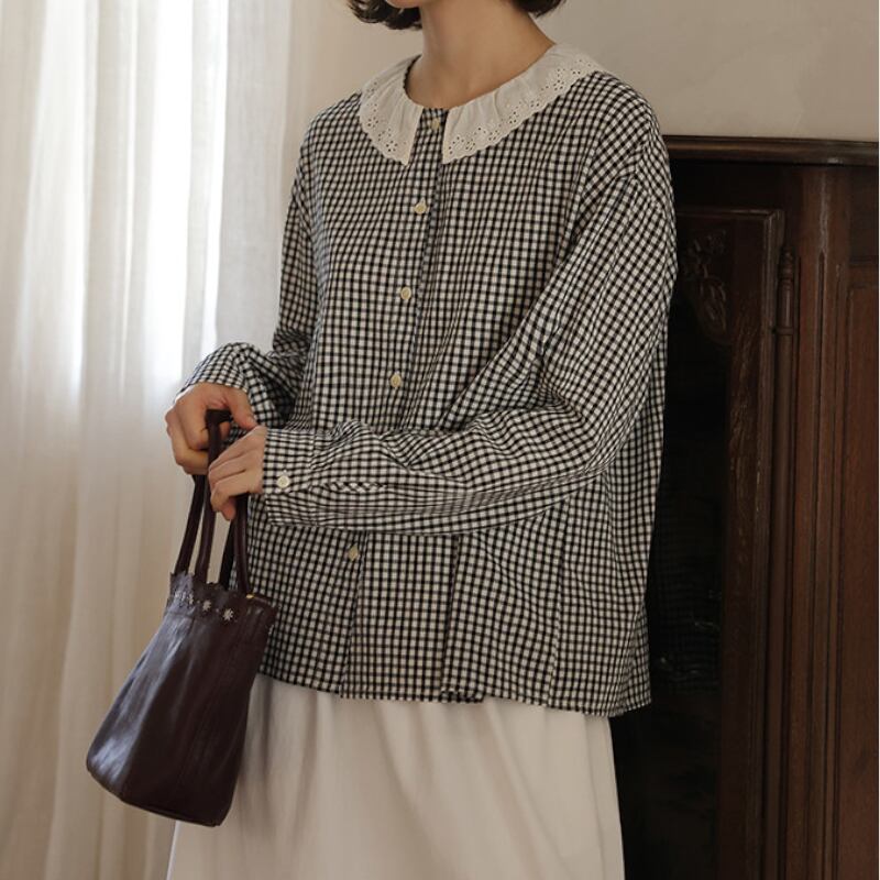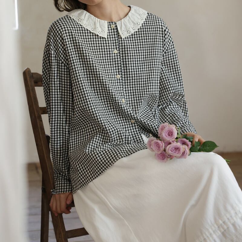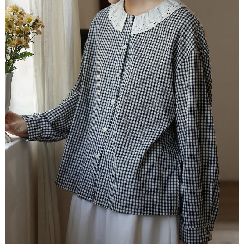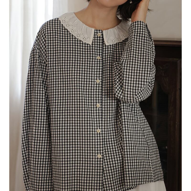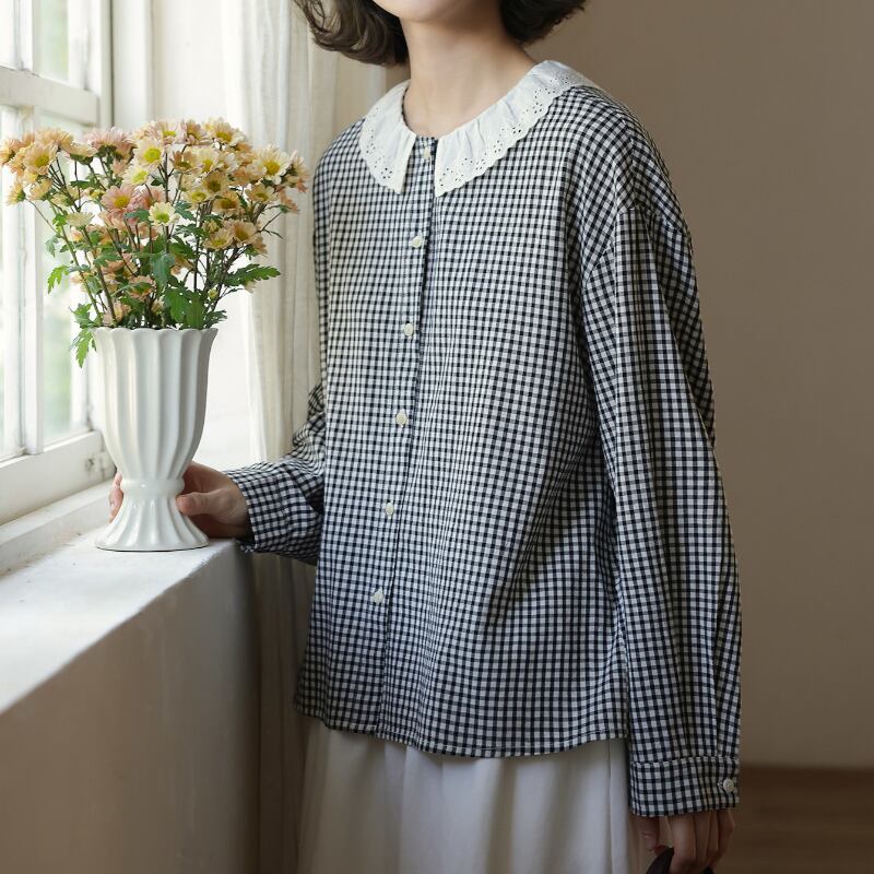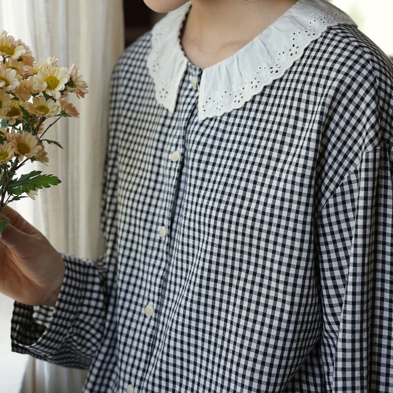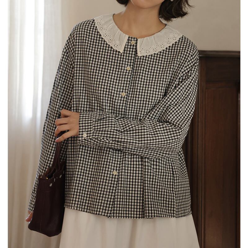 フレアカラーチェック柄シャツ M2039