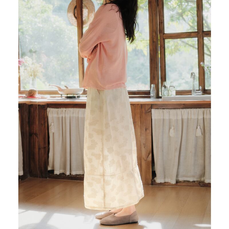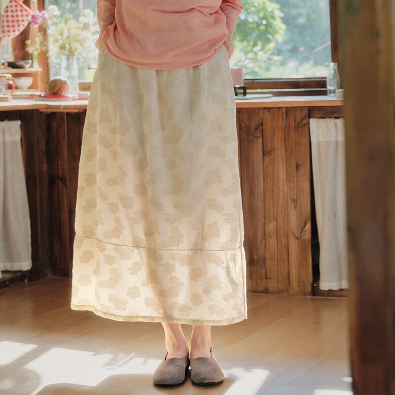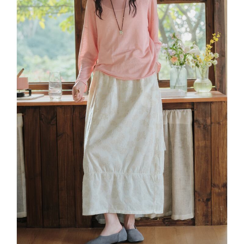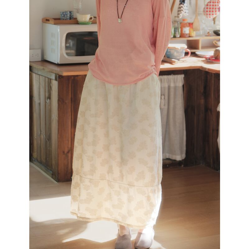 ジャカード花柄刺繍ミディスカート M2058