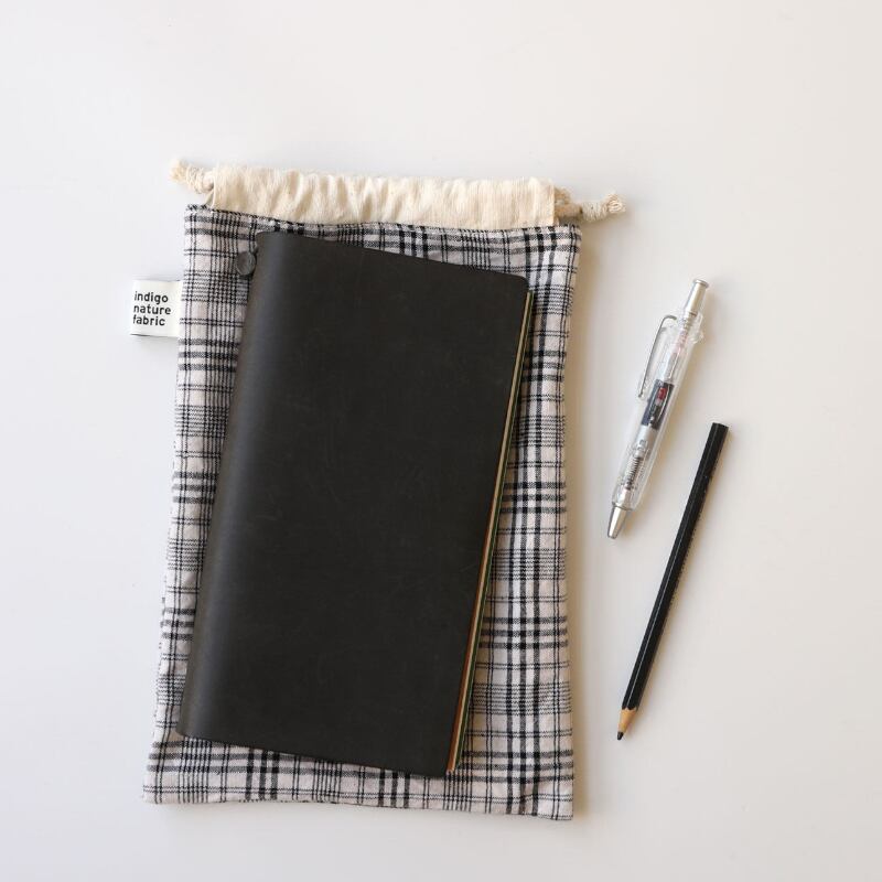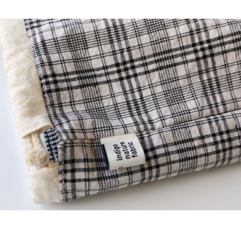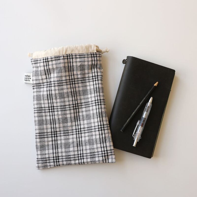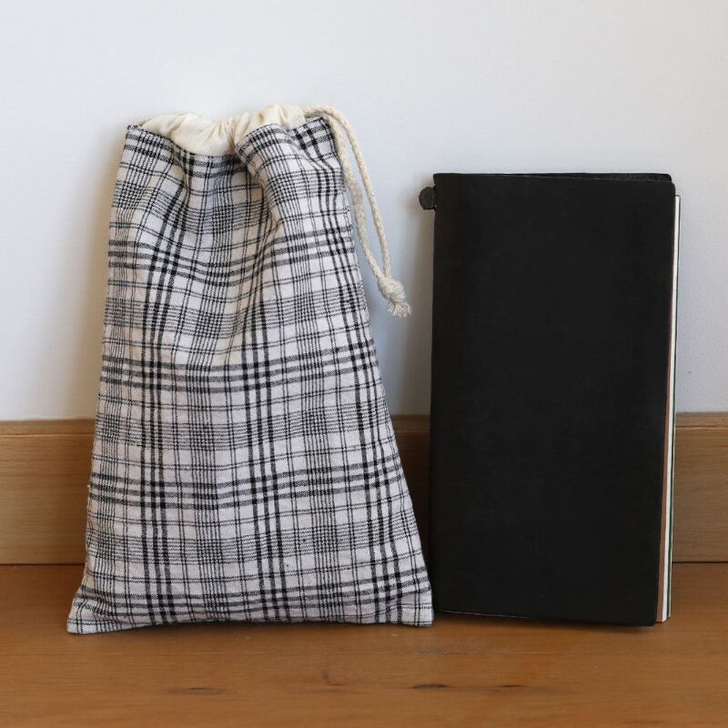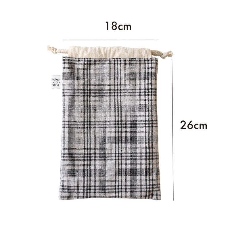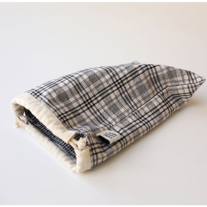 チェック柄巾着クラッチ収納バッグ M2024