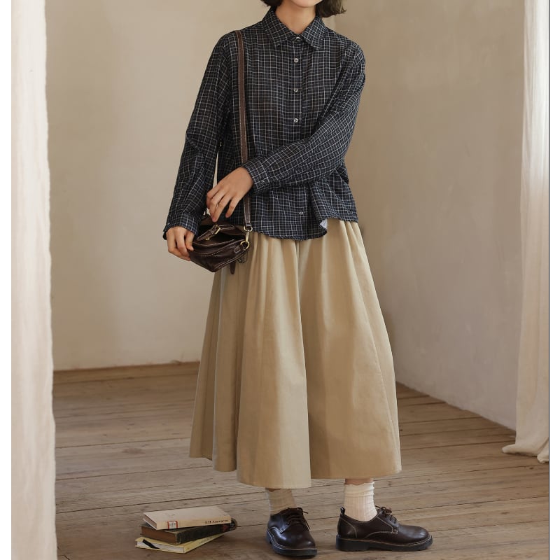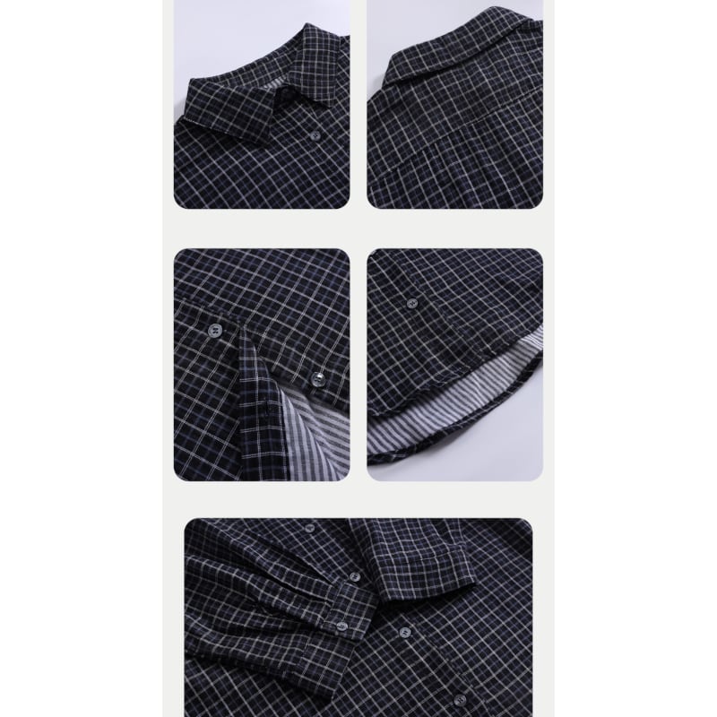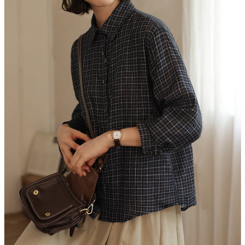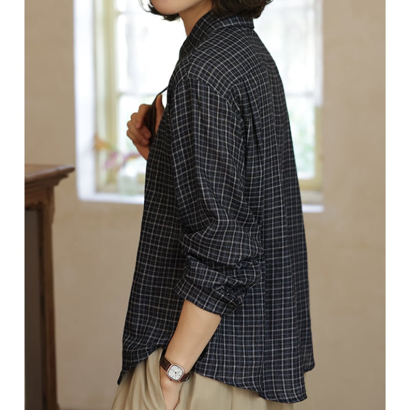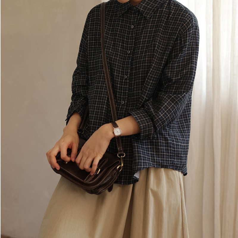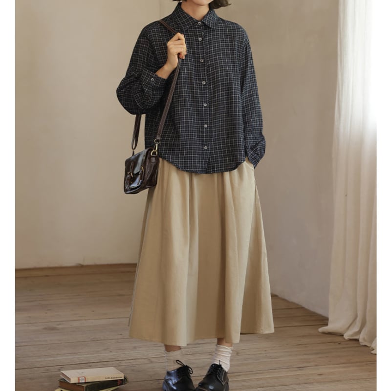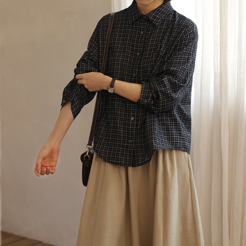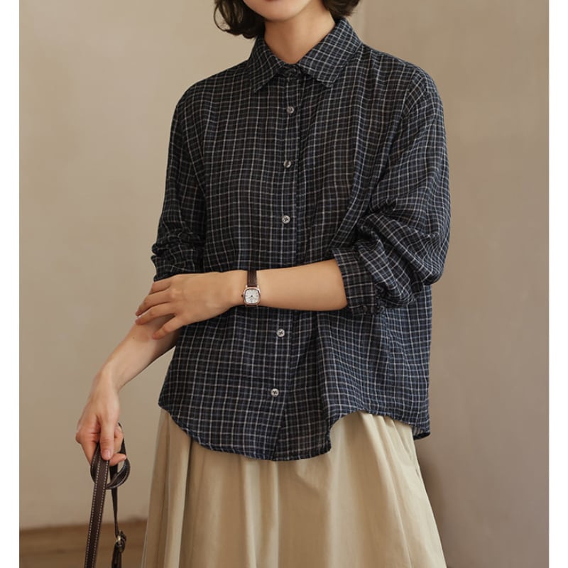 チェック柄カジュアル長袖シャツ M2046