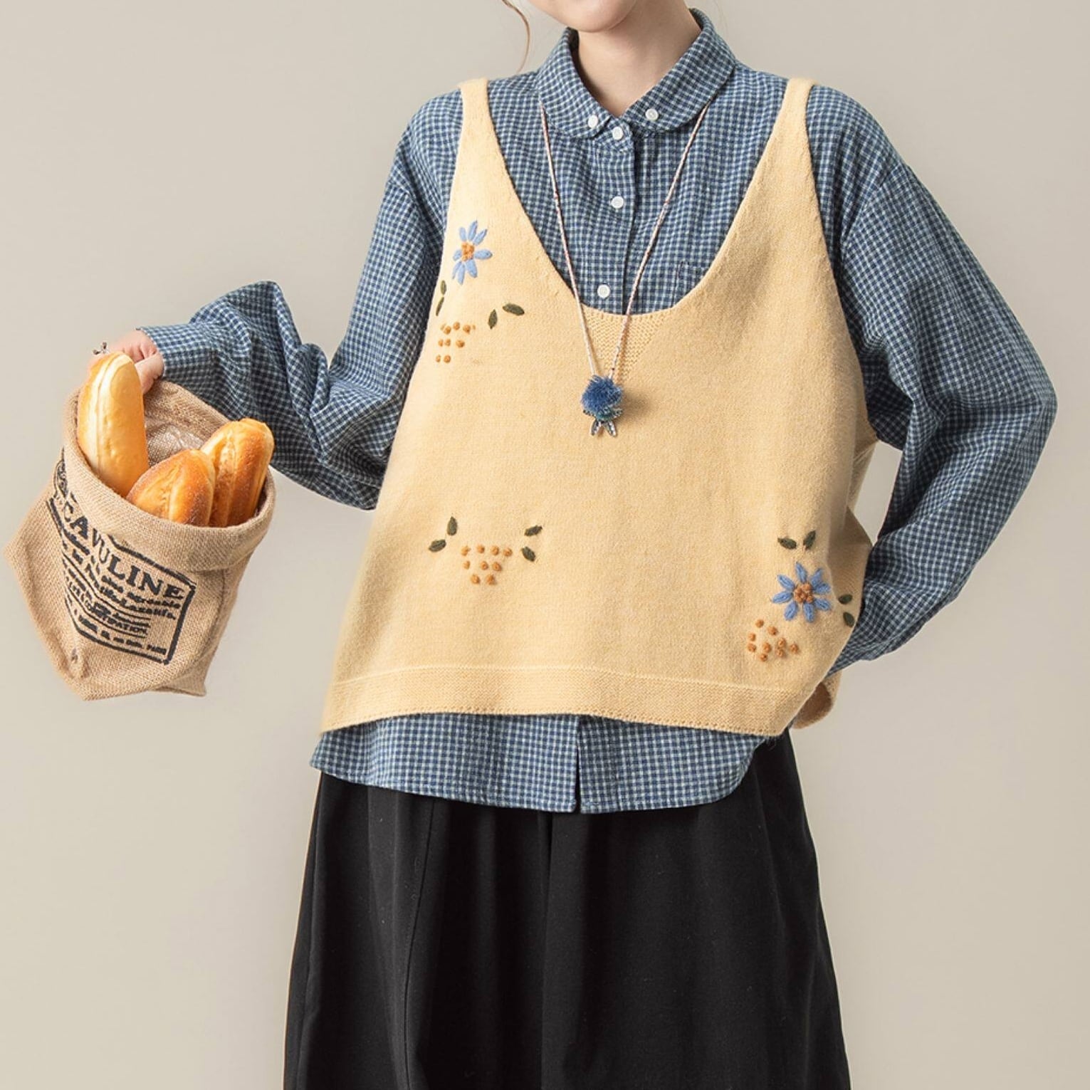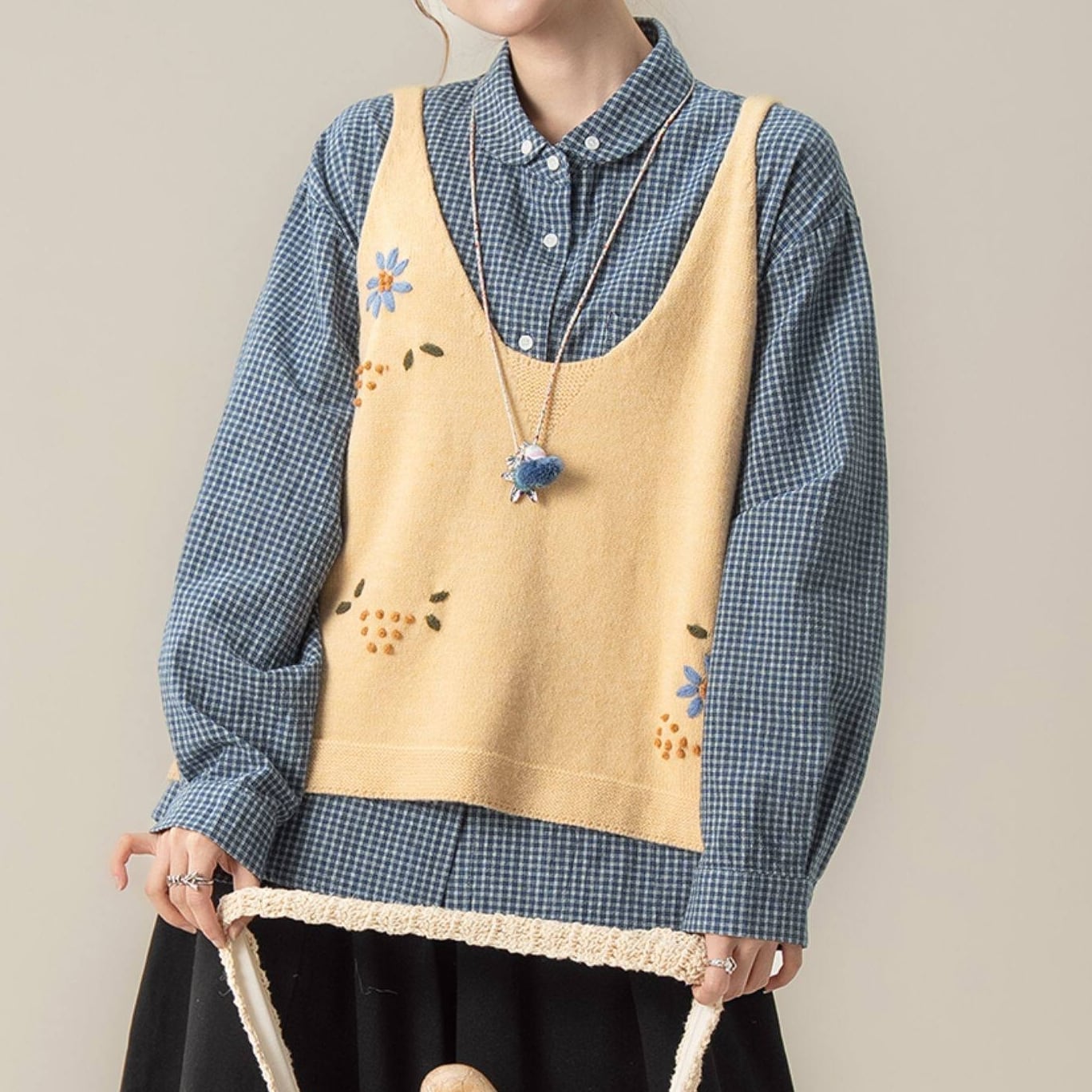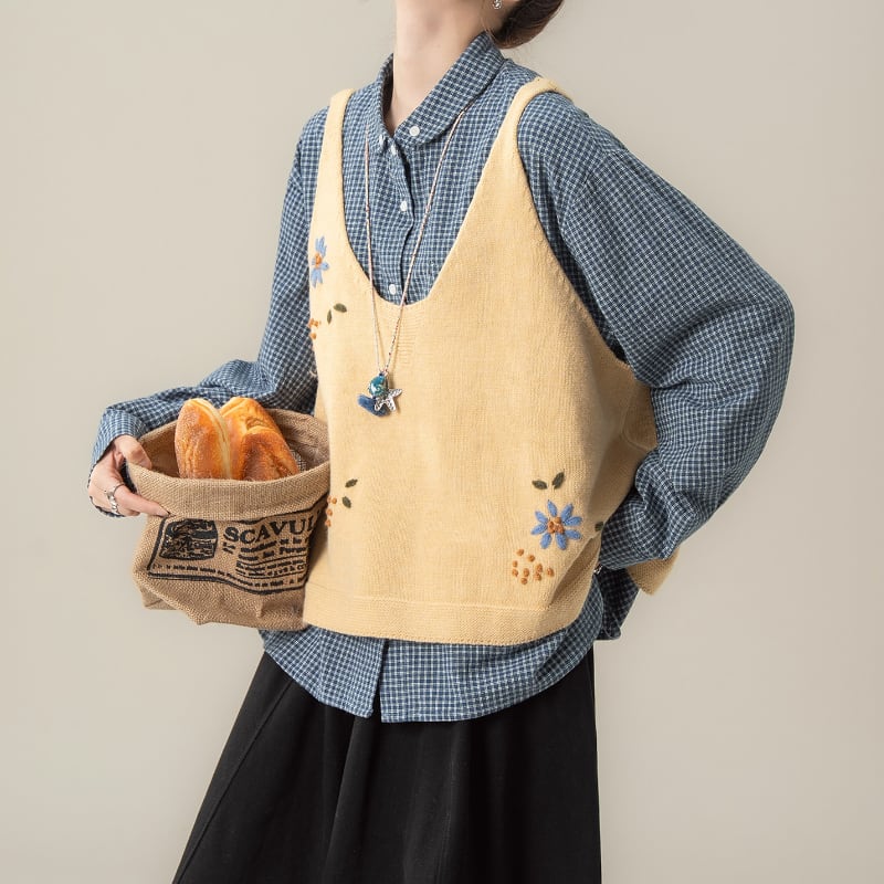 ナチュラル花柄刺繡ベスト M2105