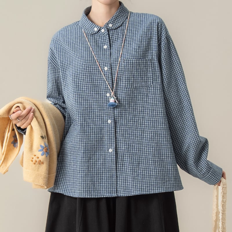 ブルーチェックシャツ M2106