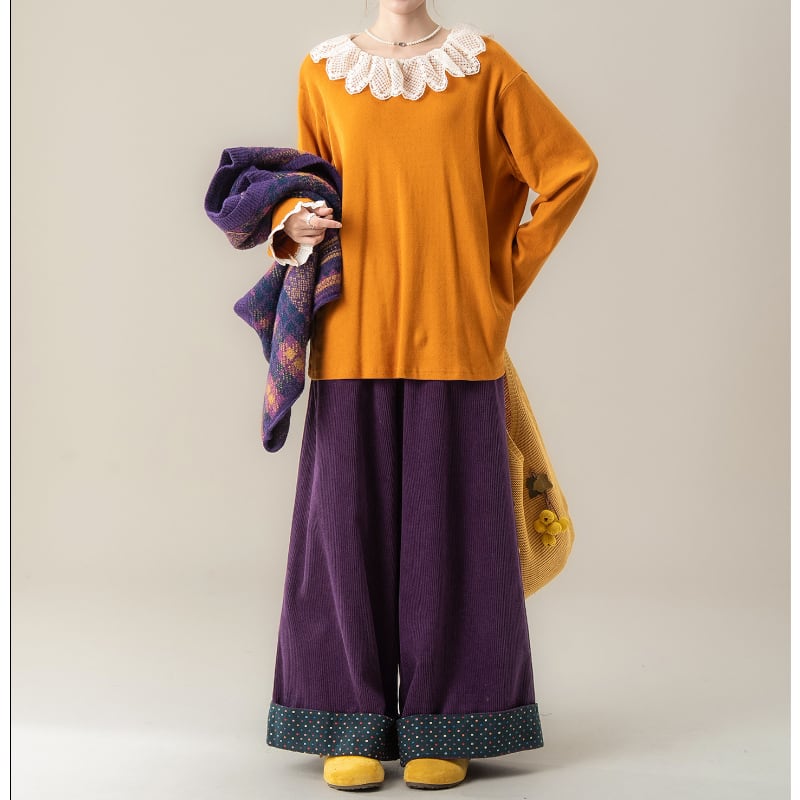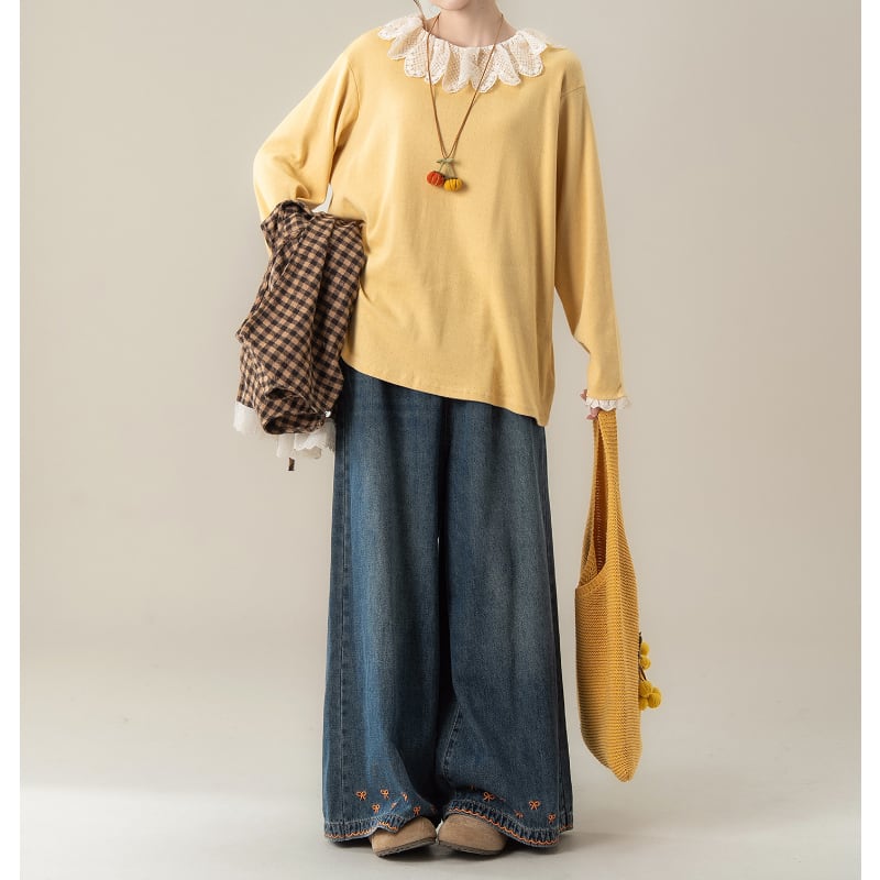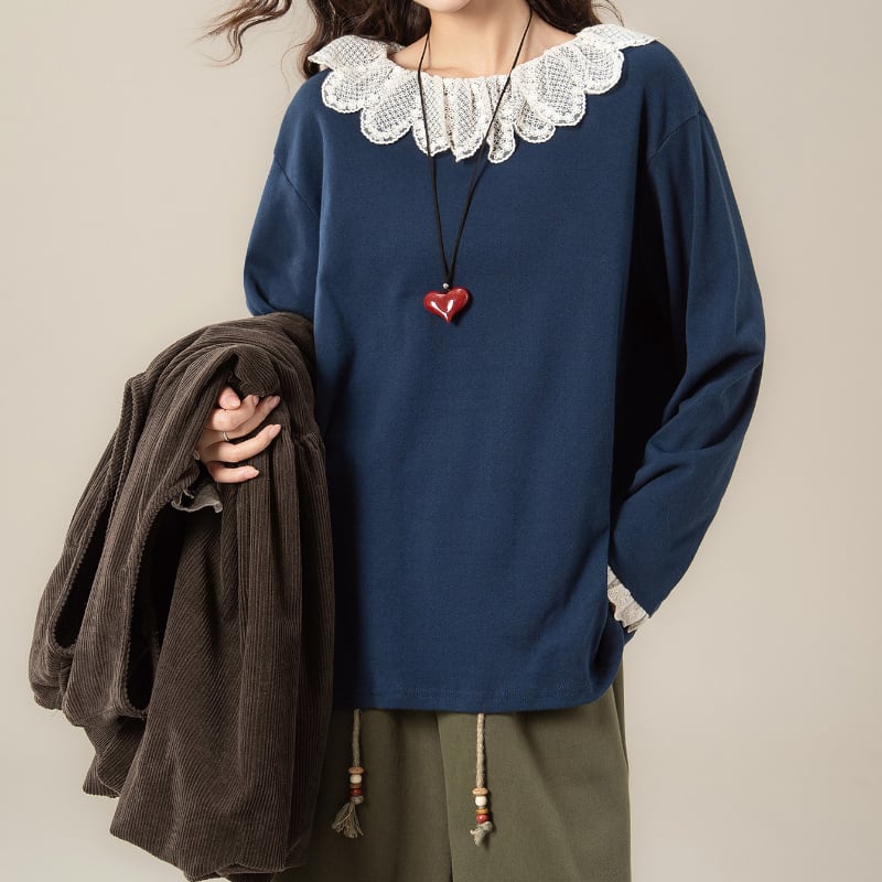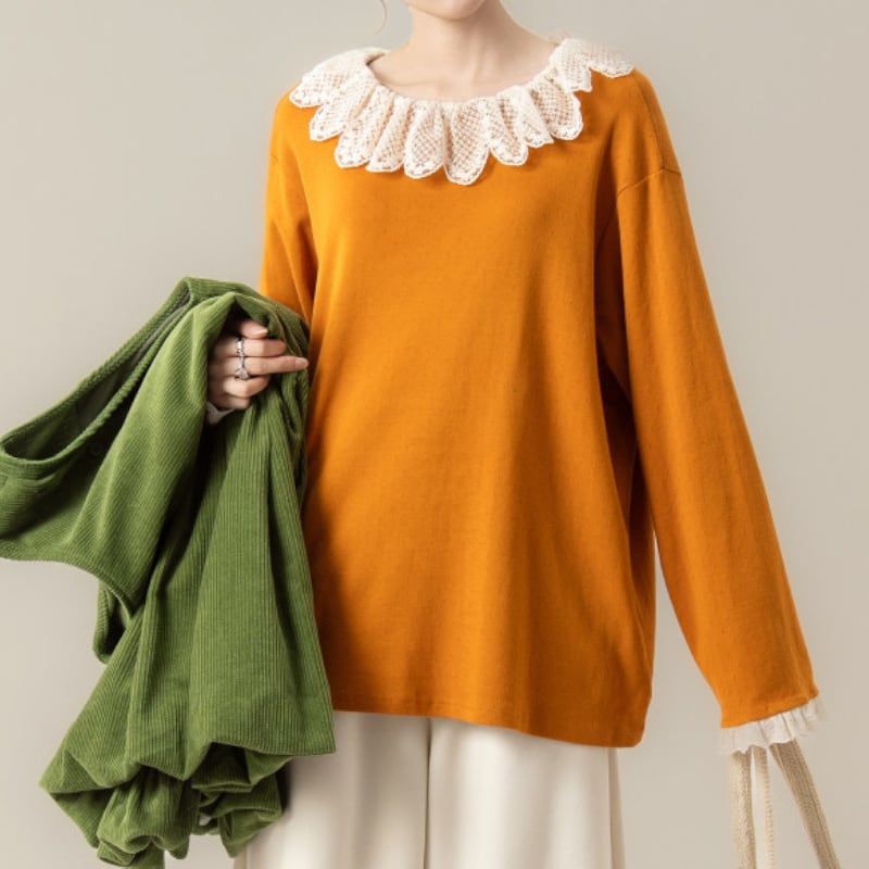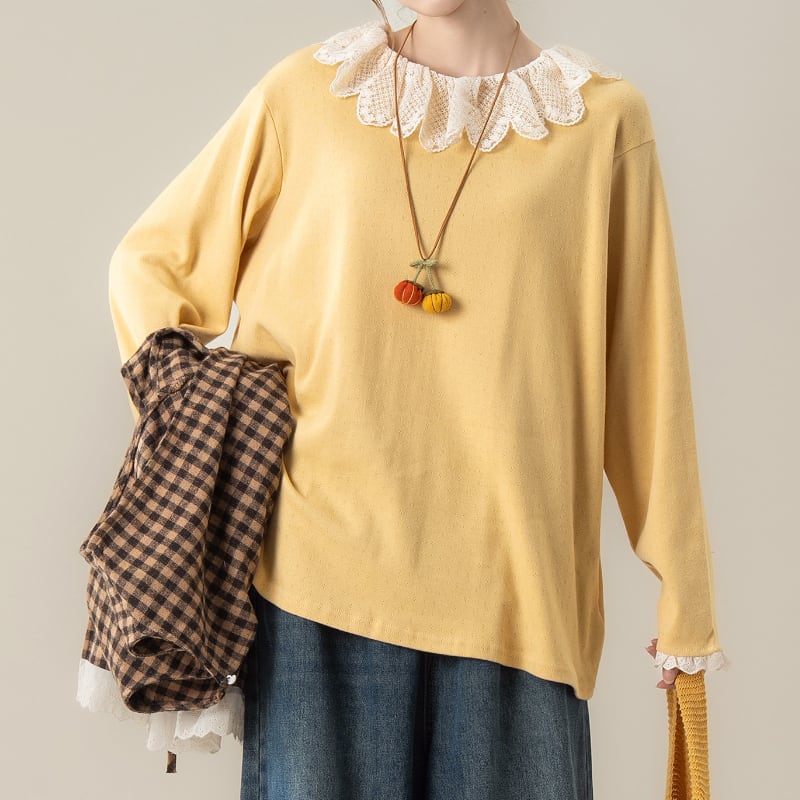 フリルカラーレース刺繡Tシャツ M2113