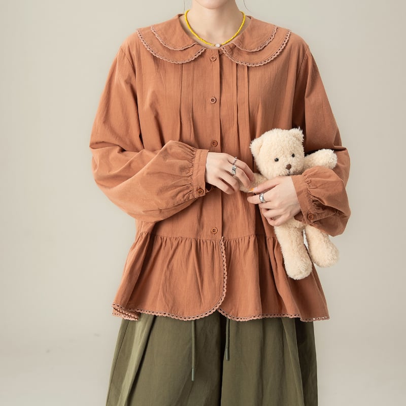 2重丸襟ピンタックブラウス M2132