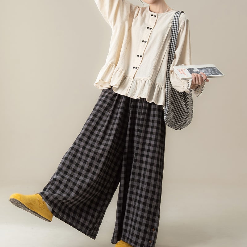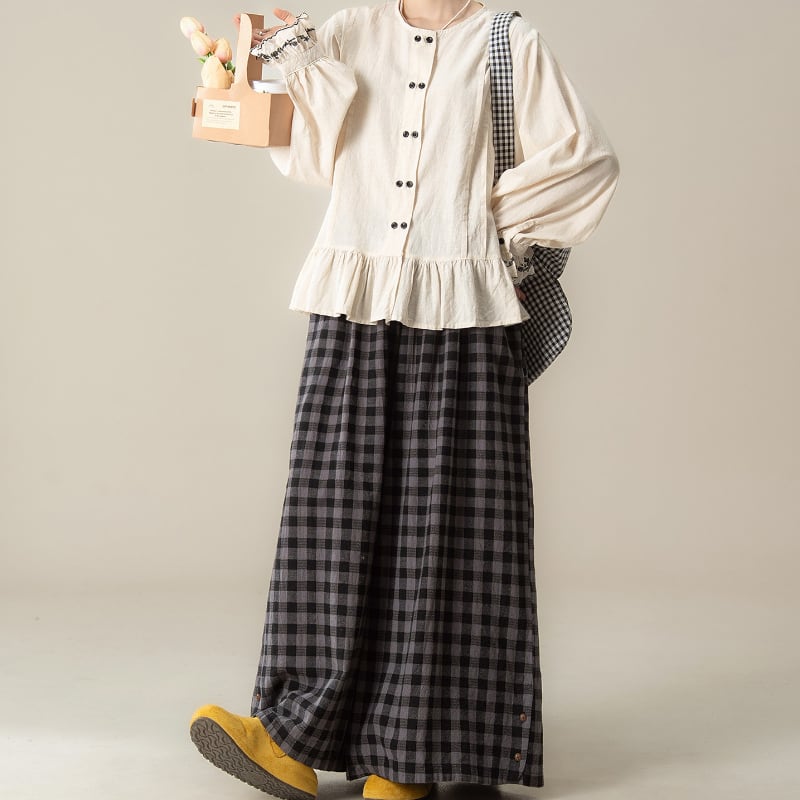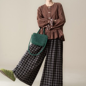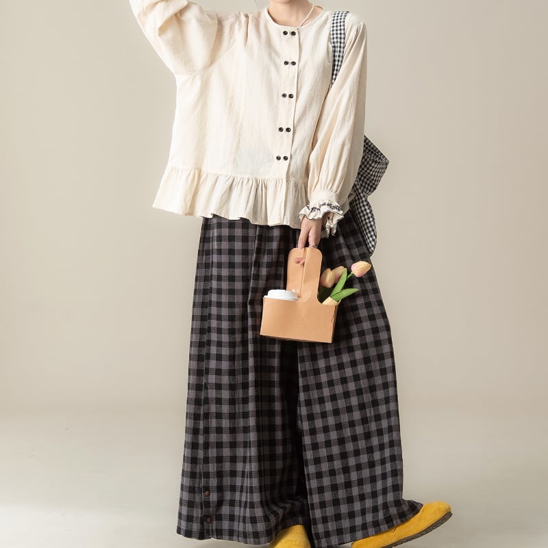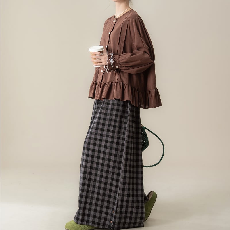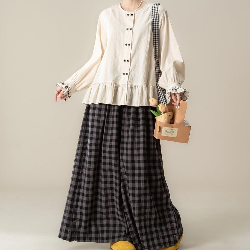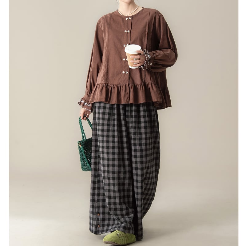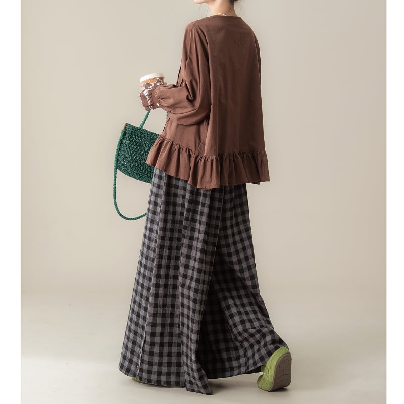 ダブルボタン裾フリル刺繍ブラウス M2133