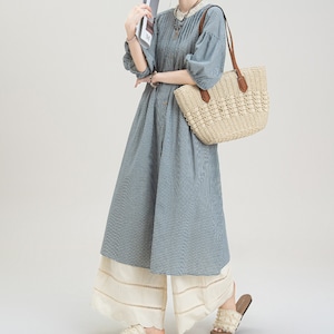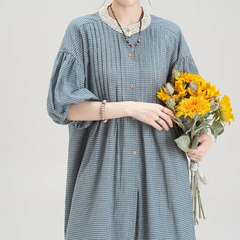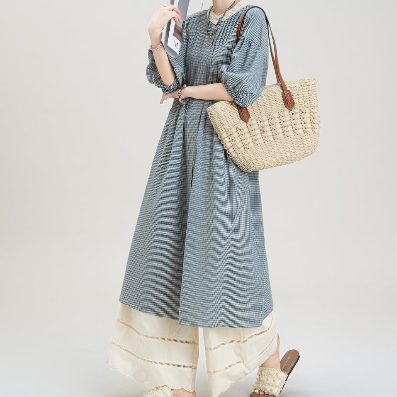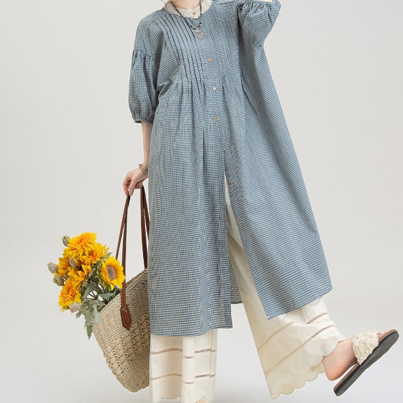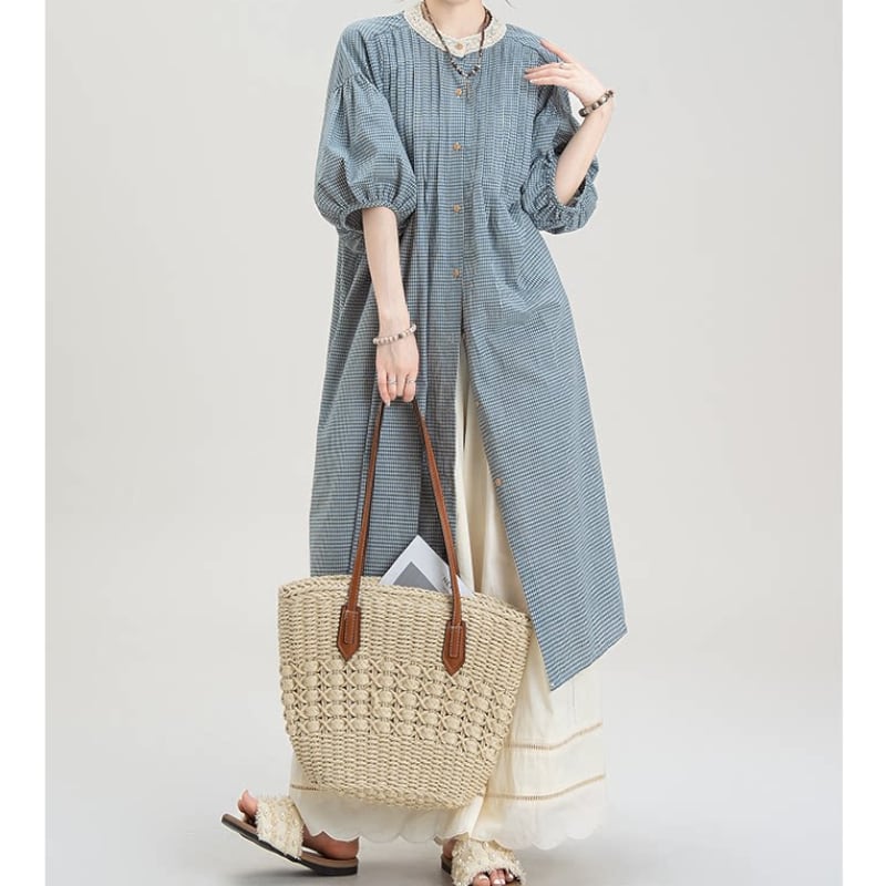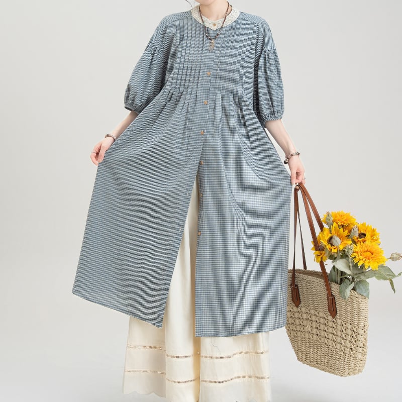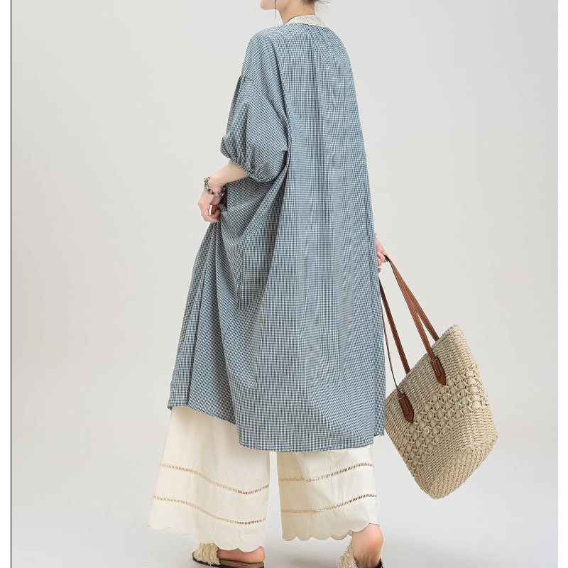 ギンガムチェック柄ロングシャツワンピース M2149