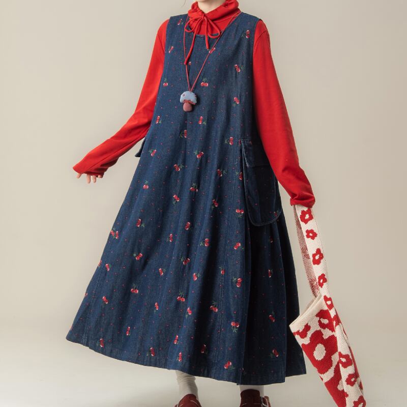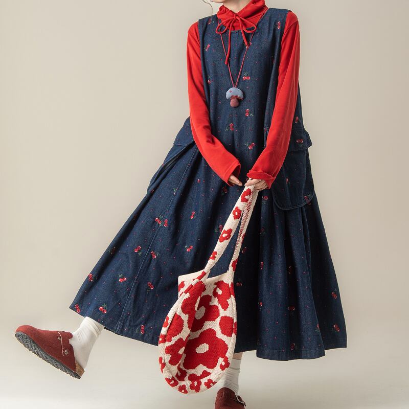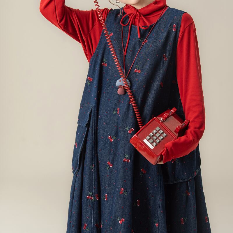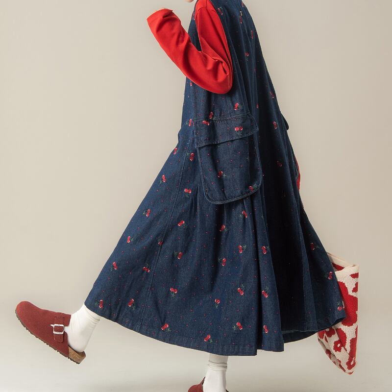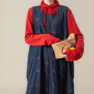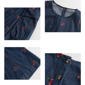 さくらんぼ刺繍デニムサロペットワンピース M2154