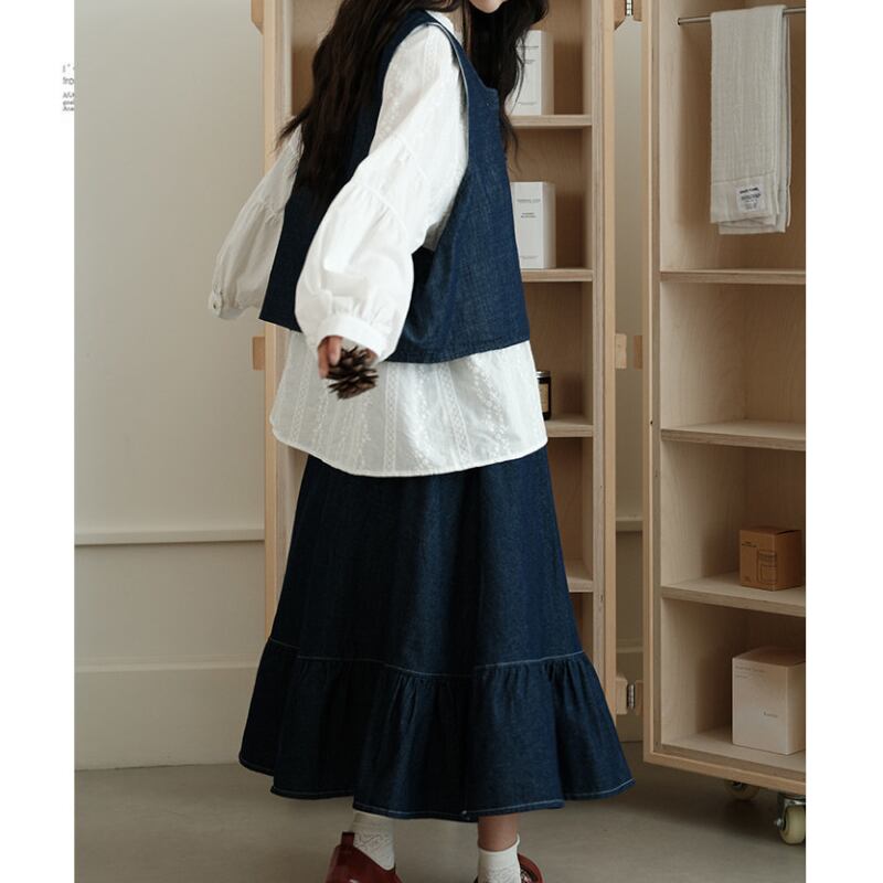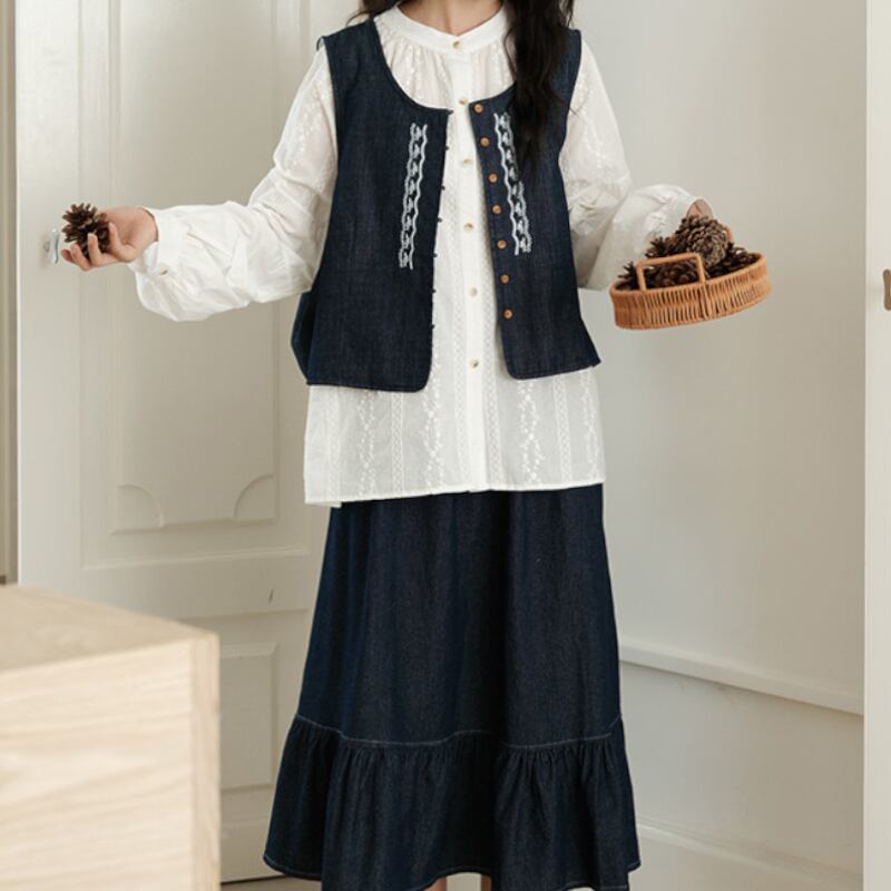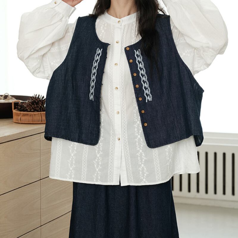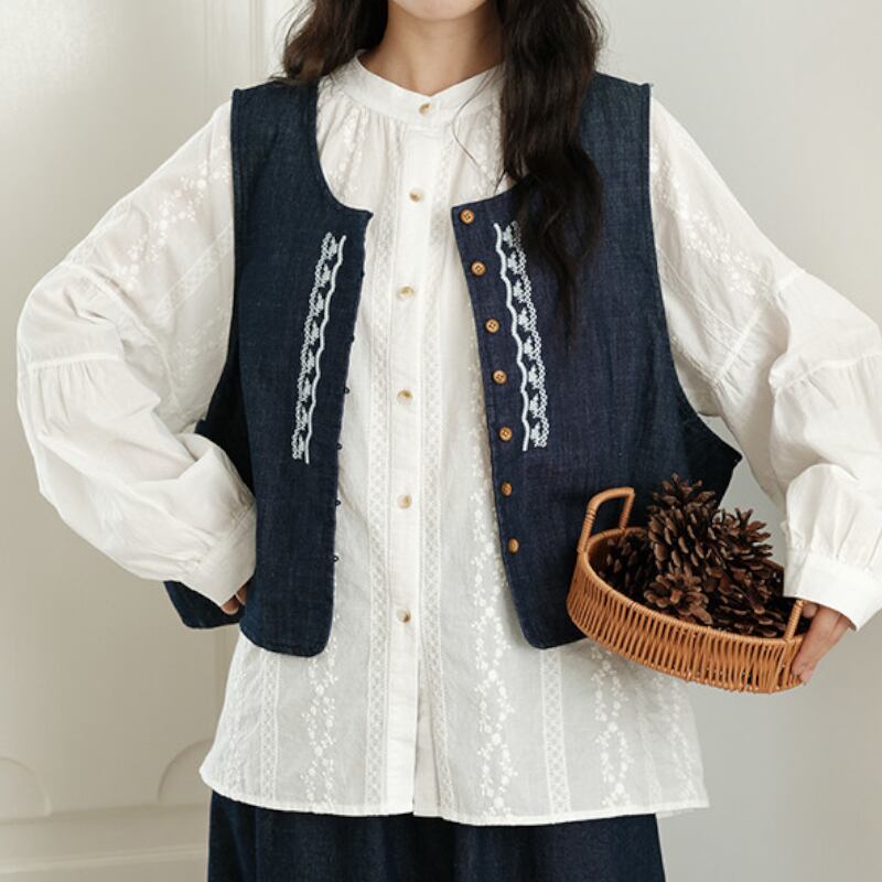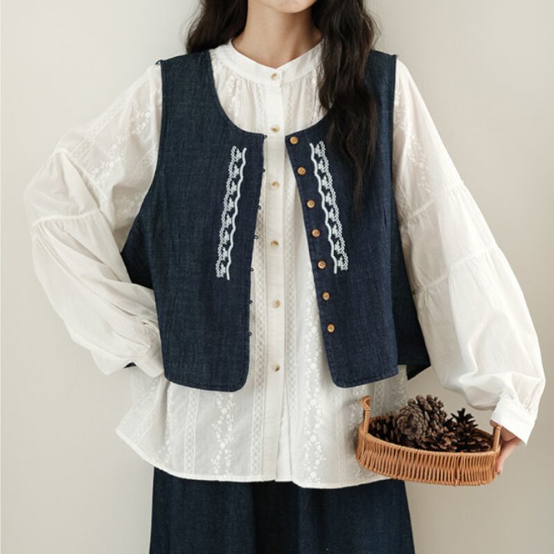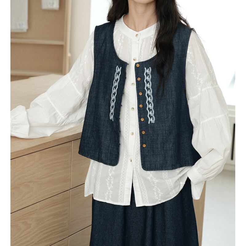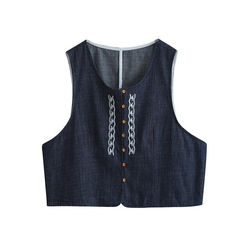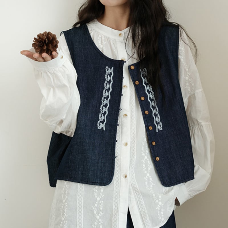 デニム刺繍入りショート丈ベスト M2167