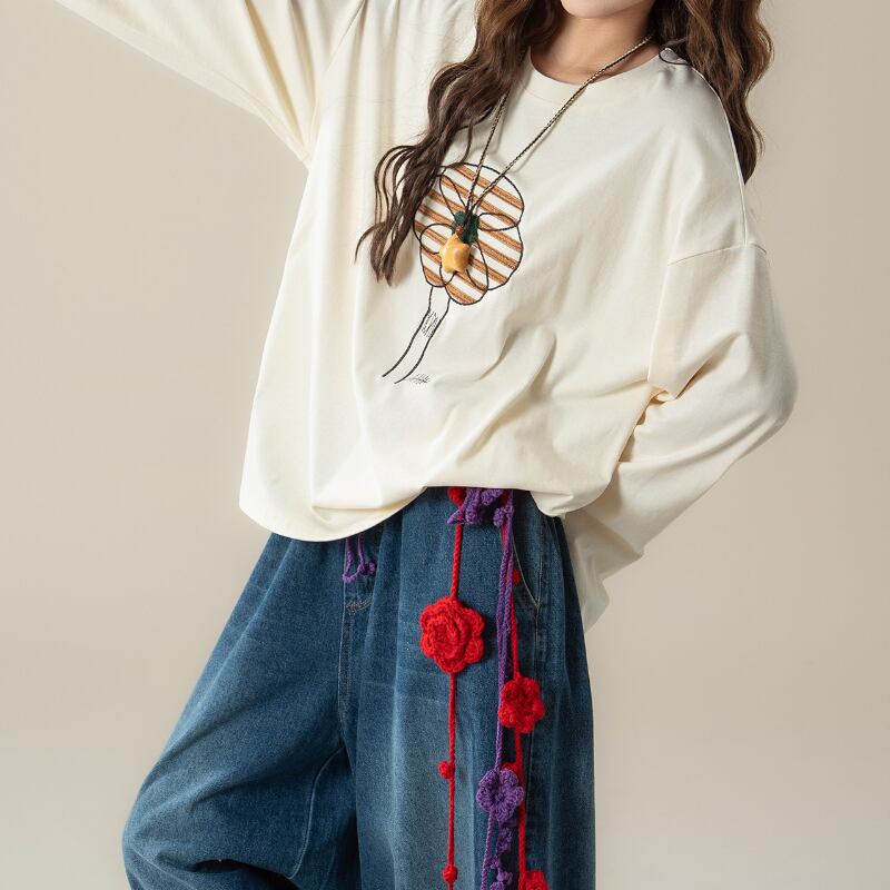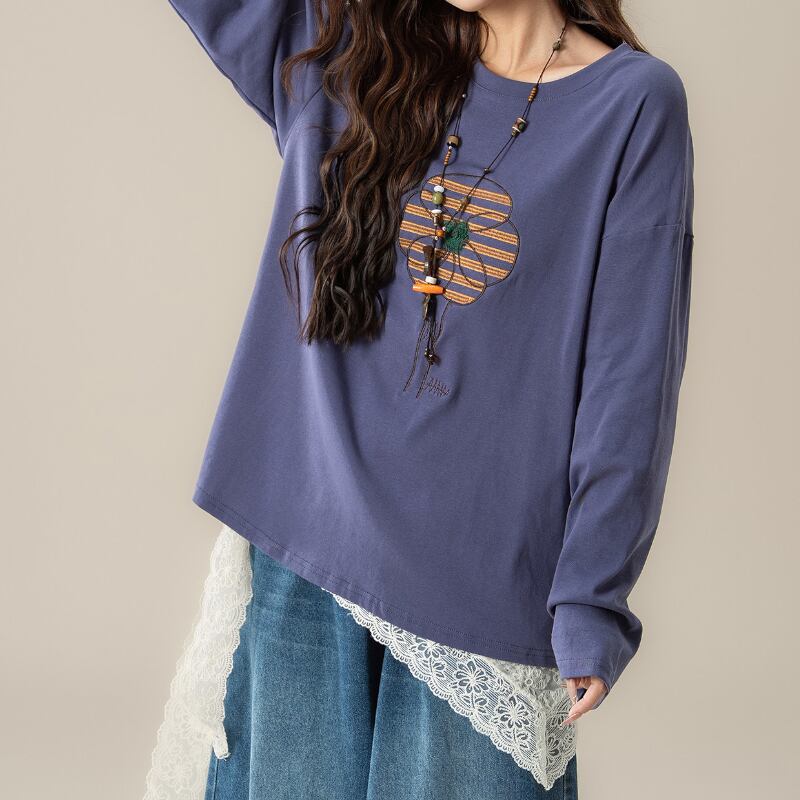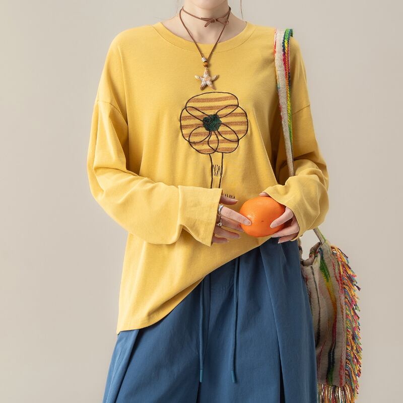 花柄刺繍ナチュラルロンT M2177