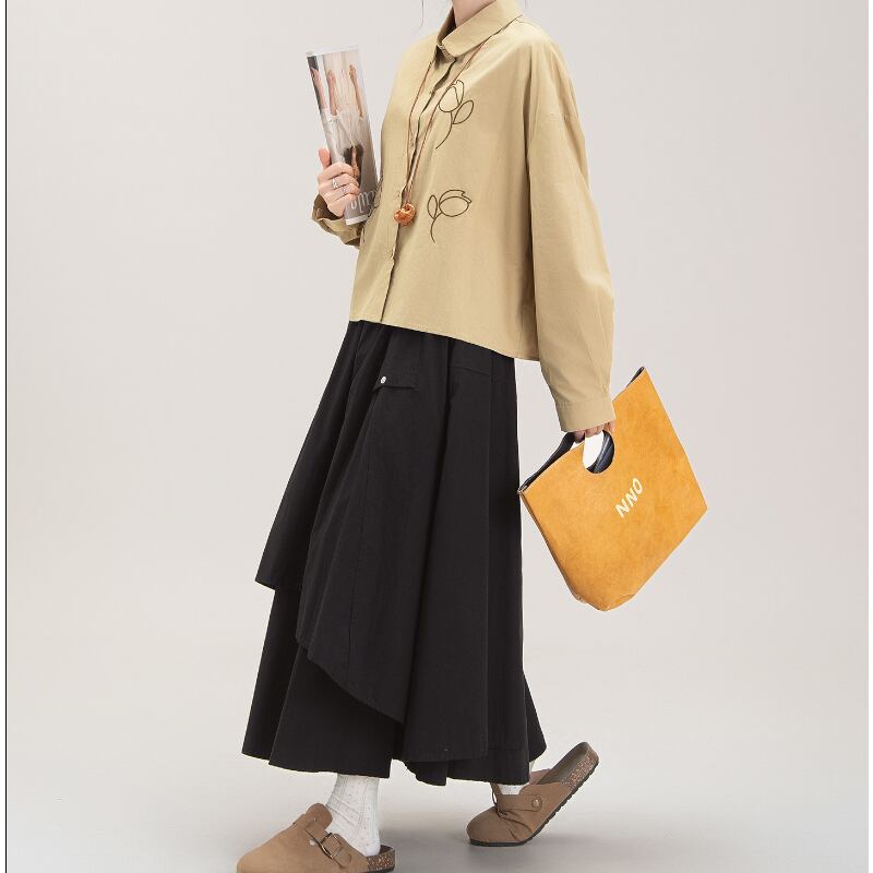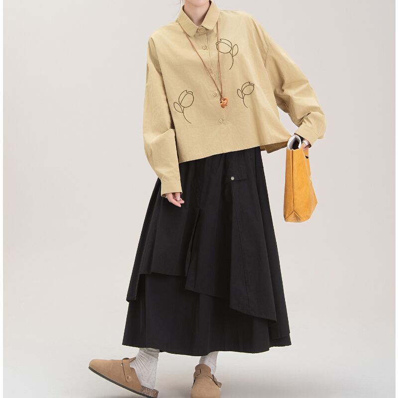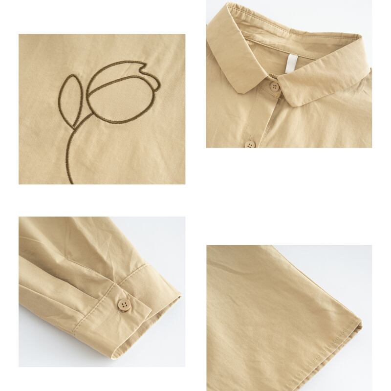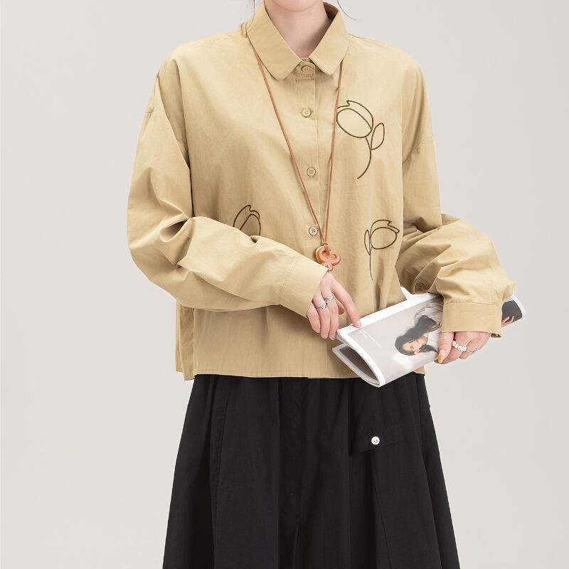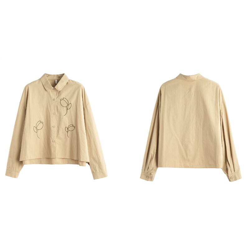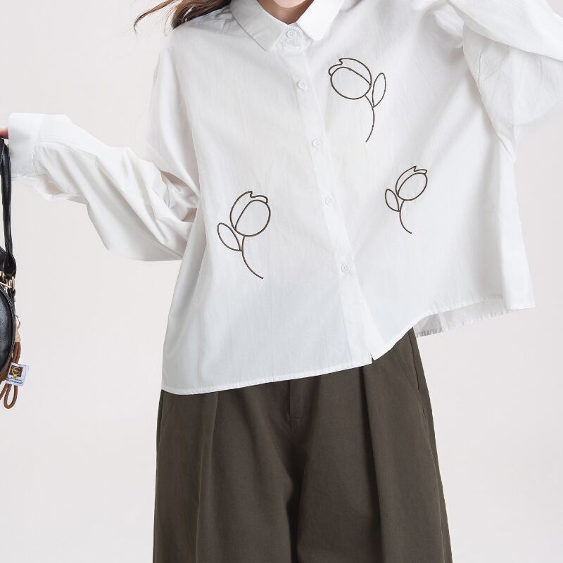 チューリップ刺繍ショート丈長袖シャツ M2181
