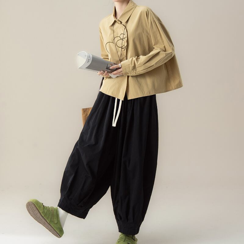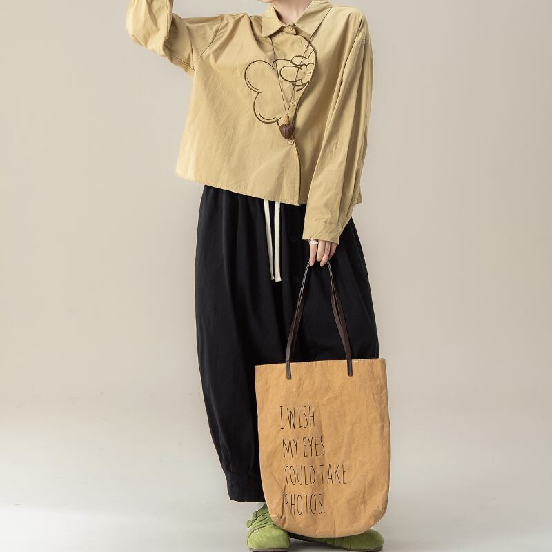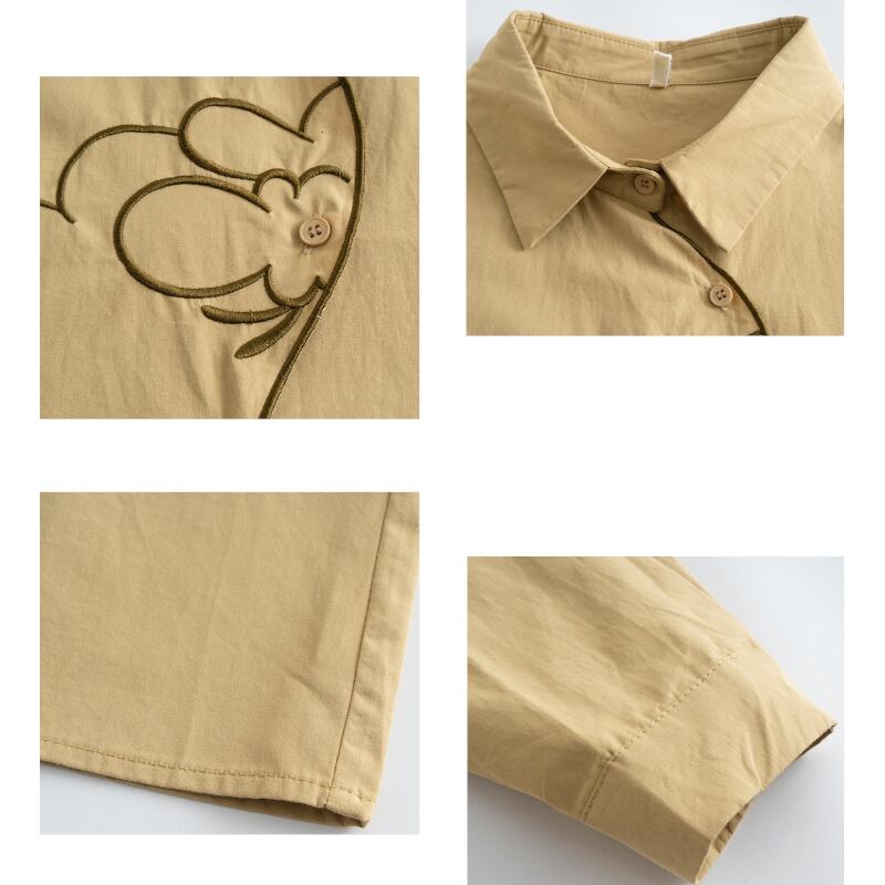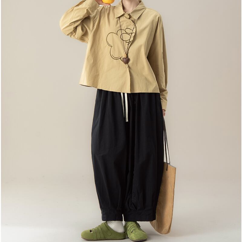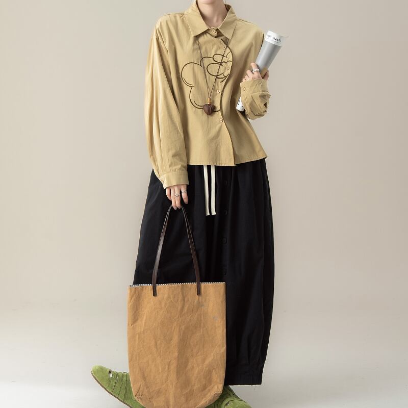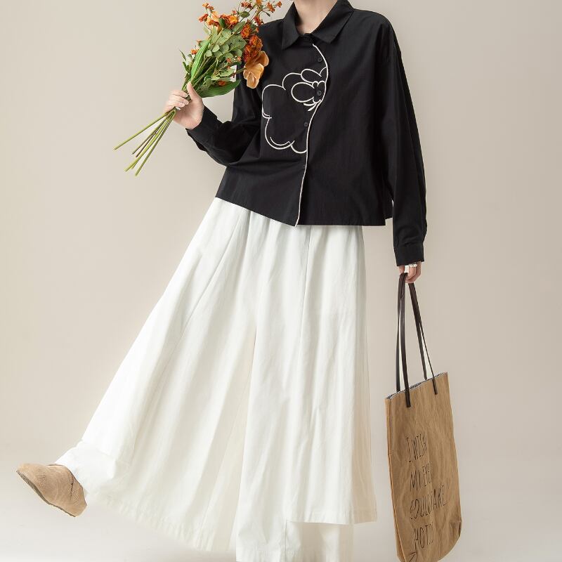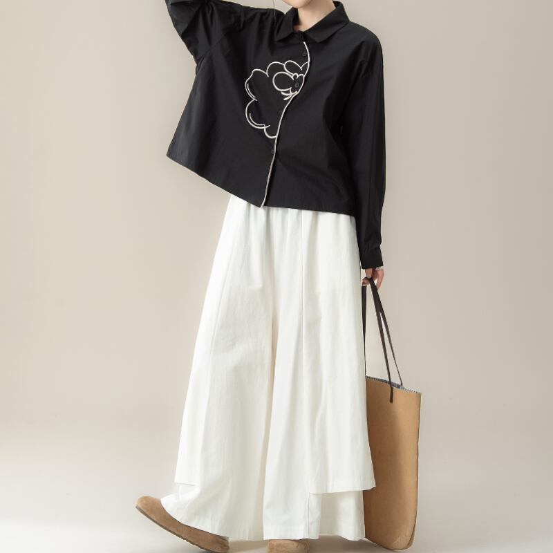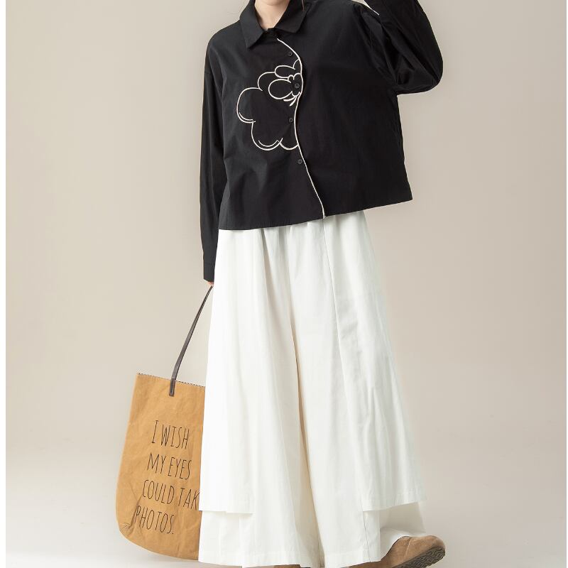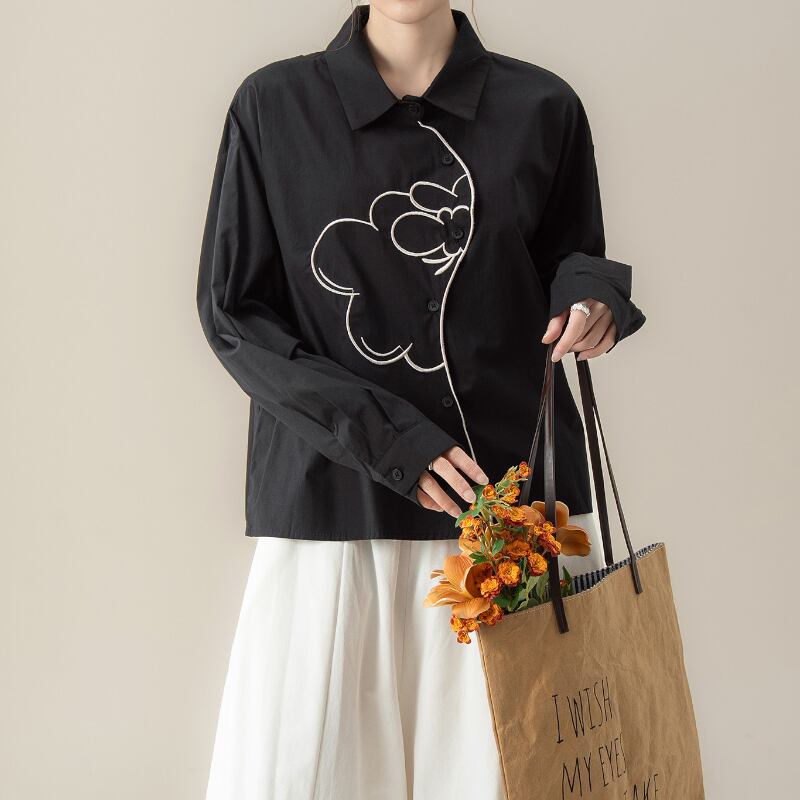 アシンメトリー花柄刺繍長袖シャツ M2182