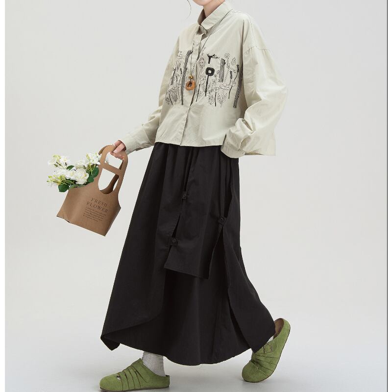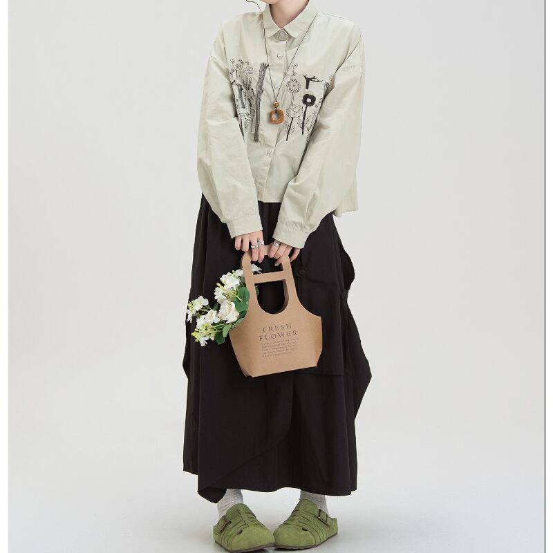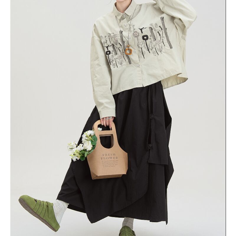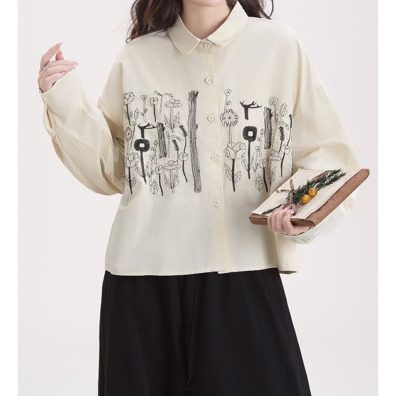 ボタニカル刺繍ショート丈シャツ M2183