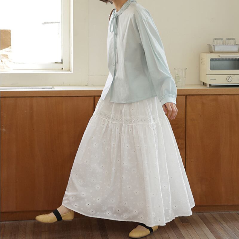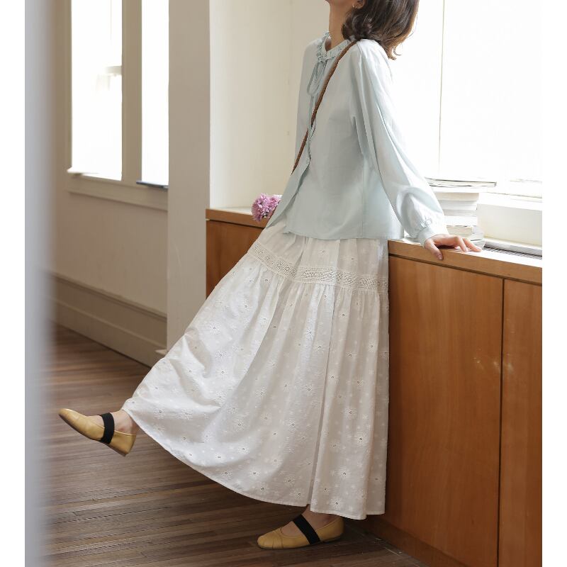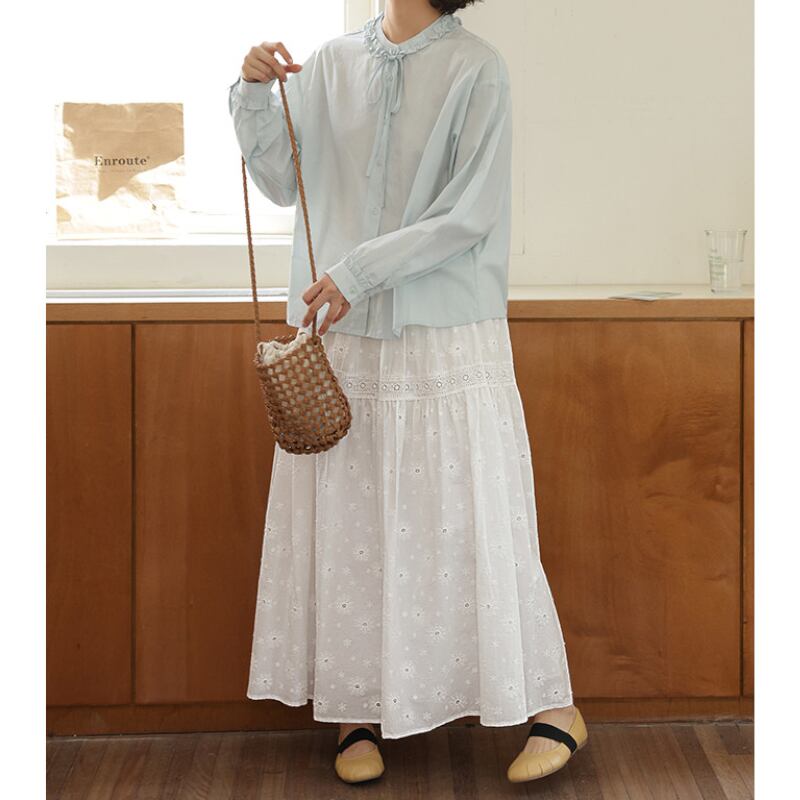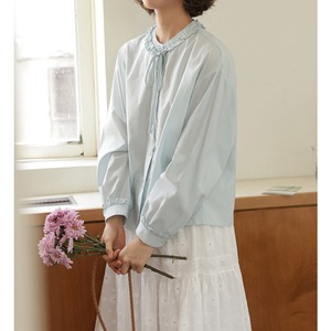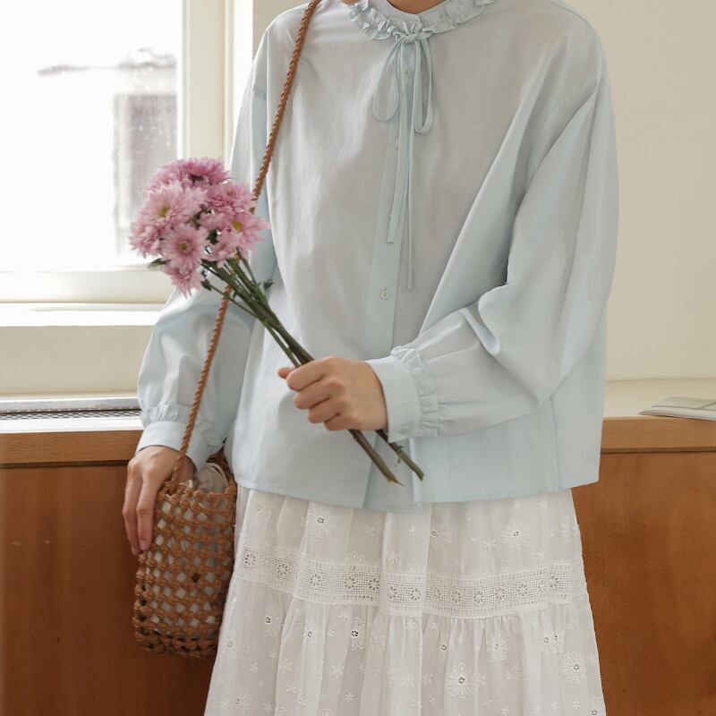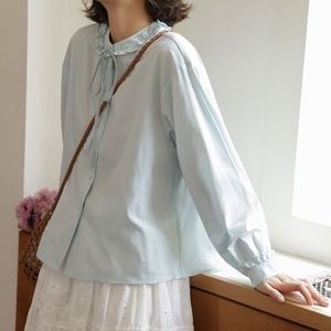 フリルネックリボンタイブラウス M2195