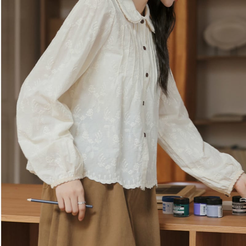 総柄刺繍ピンタックブラウス M2263