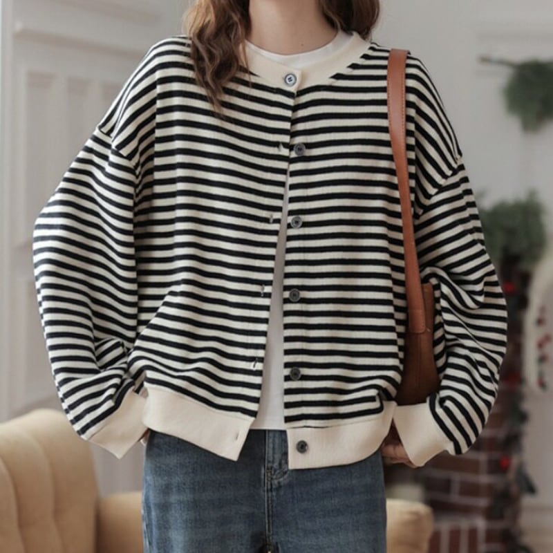 ボーダー柄カーディガントップス M2253