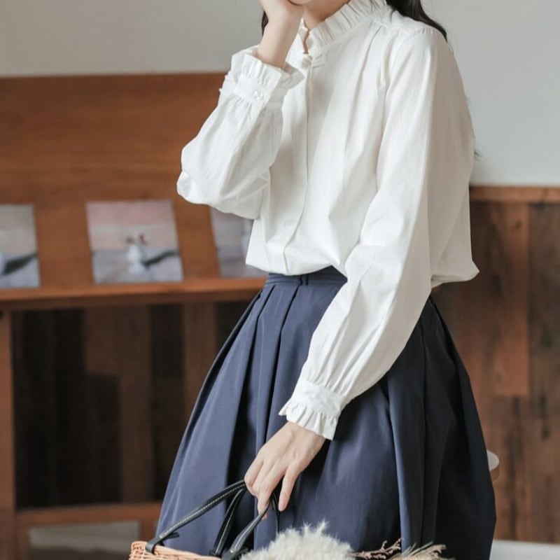立ち襟フリルギャザーブラウス M2268