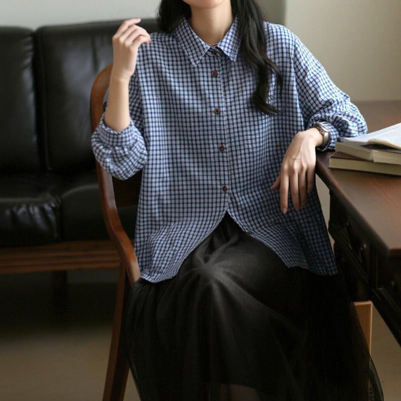 フレンチカジュアルチェック柄長袖シャツ M2252