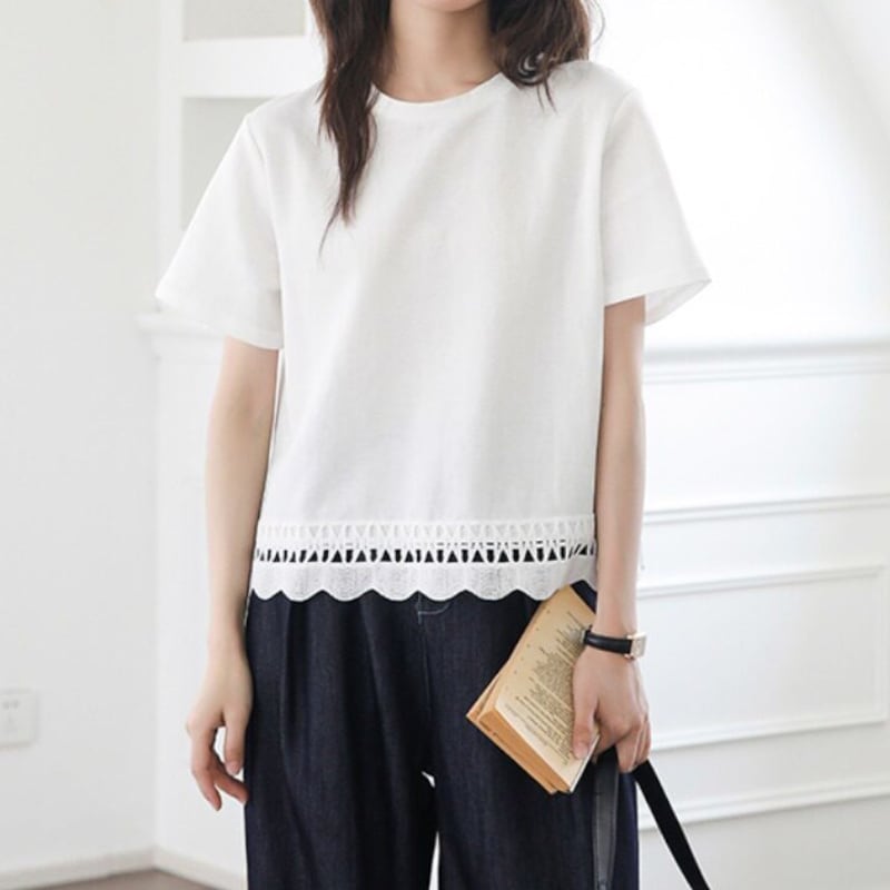 裾スカラップカットワークTシャツ M2264