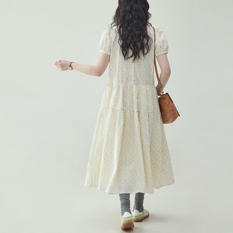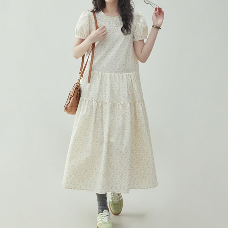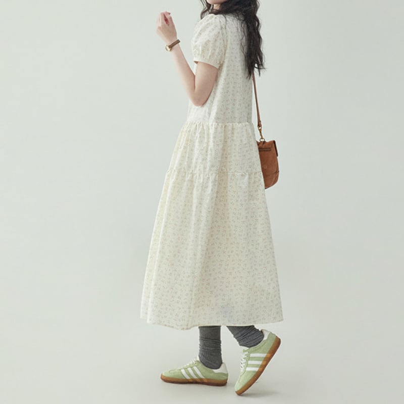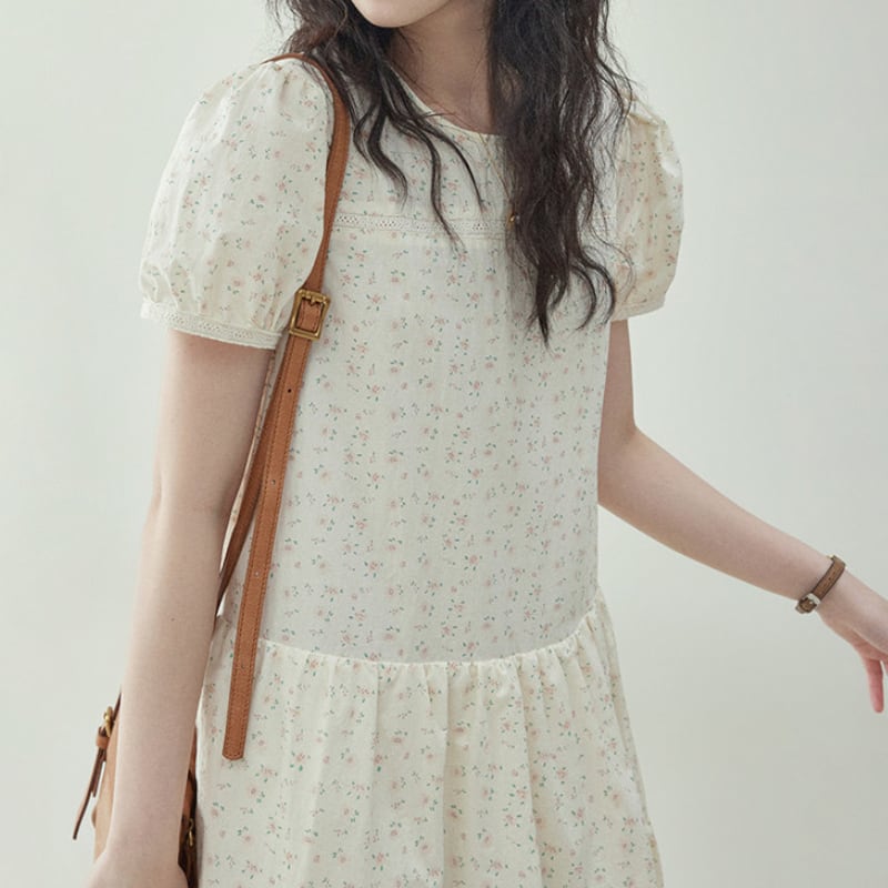 フレンチパフスリーブ小花柄ワンピース M2293