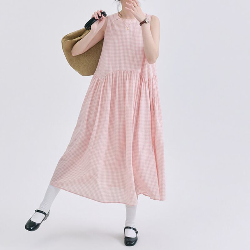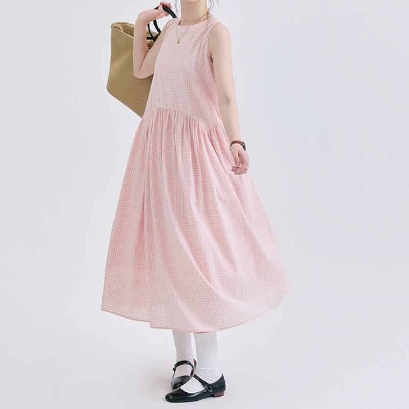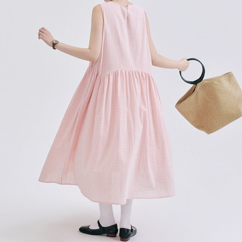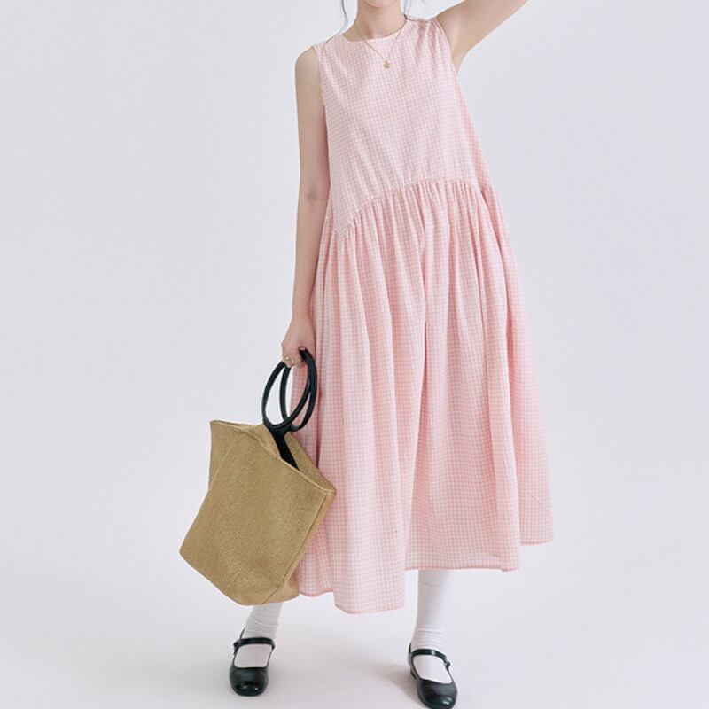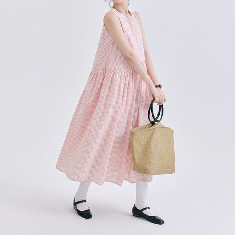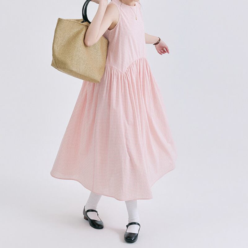ギンガムチェックノースリーブワンピース M2292