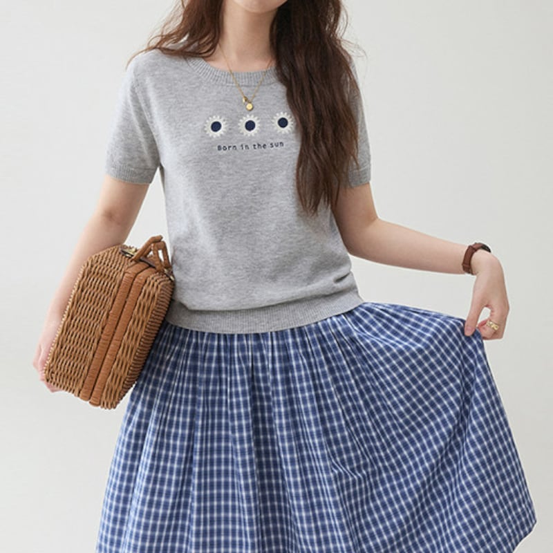 フラワー刺繍サマーニット M2276