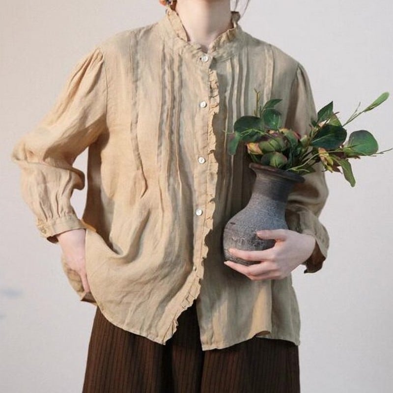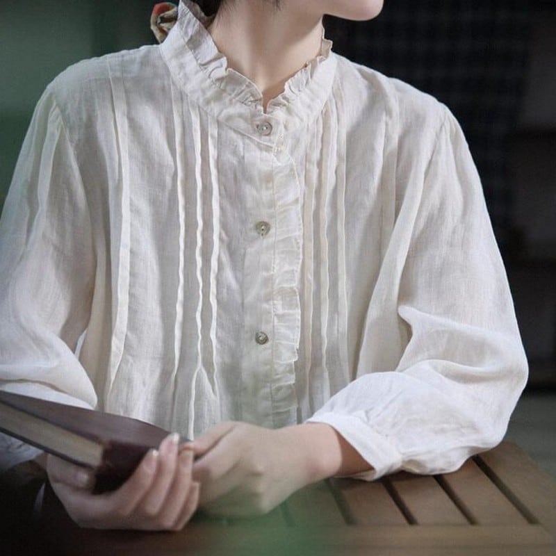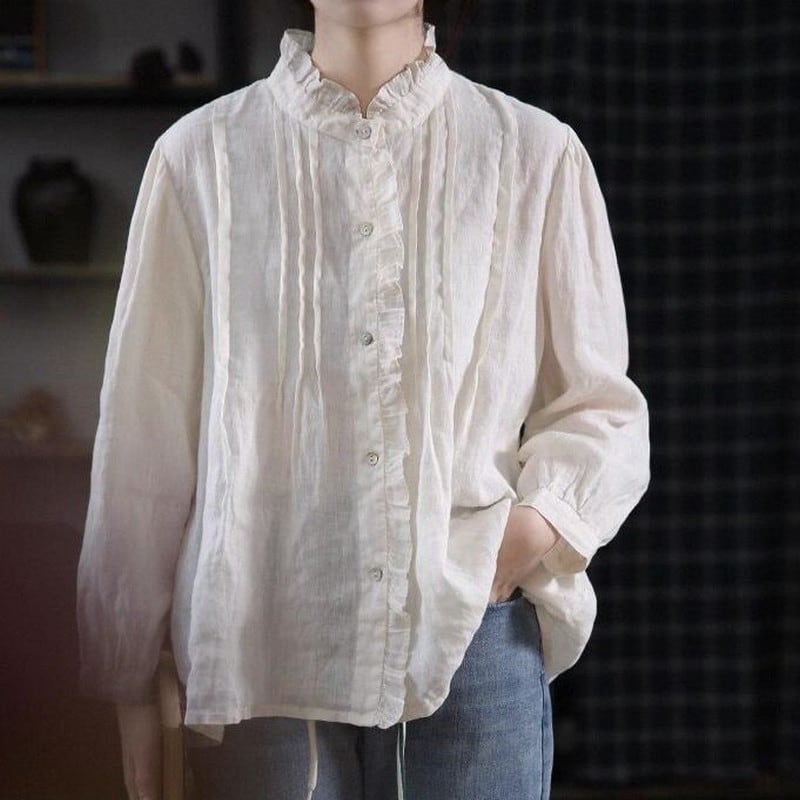 プリーツレースリネンシャツ M0214