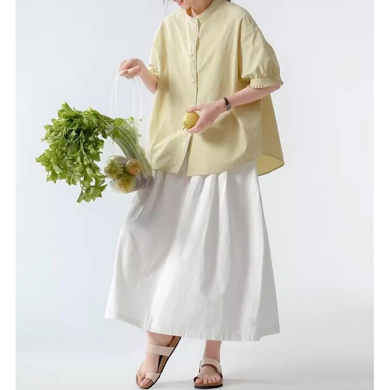 肩幅51.5 / 胸囲124 / 袖丈21 / 袖口29 / 着丈62-67 / 裾口122