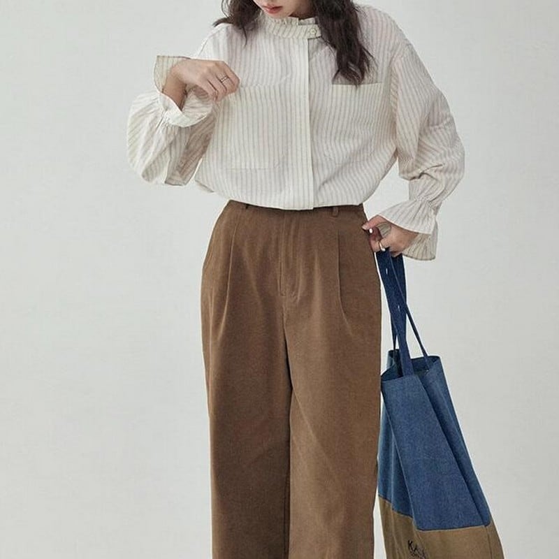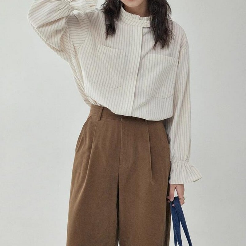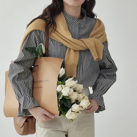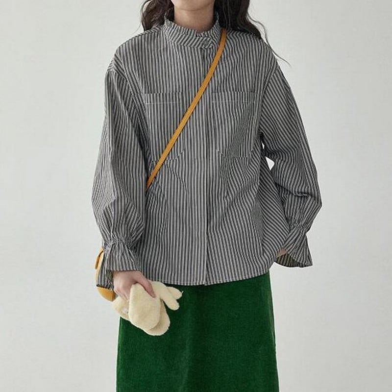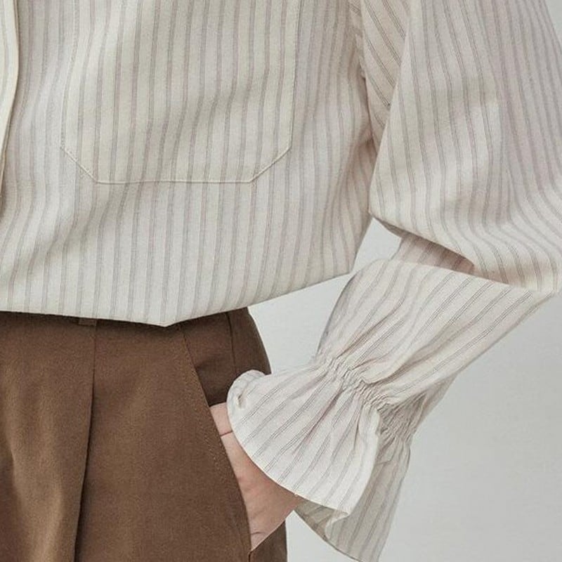 フリルスリーブストライプシャツ M0624