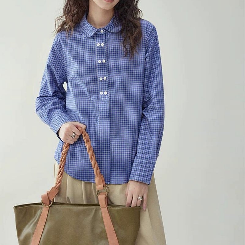 チェック柄ラウンドカラーシャツ M0804