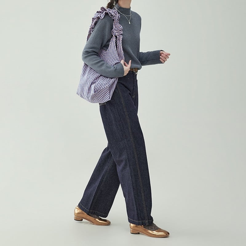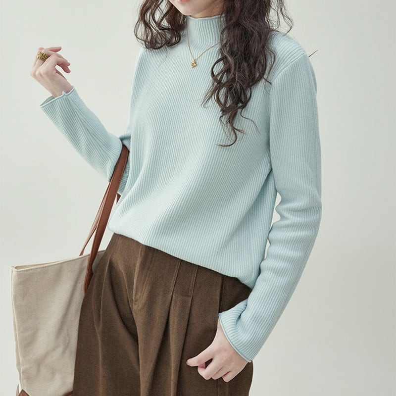ボトルネックリブニット M0963